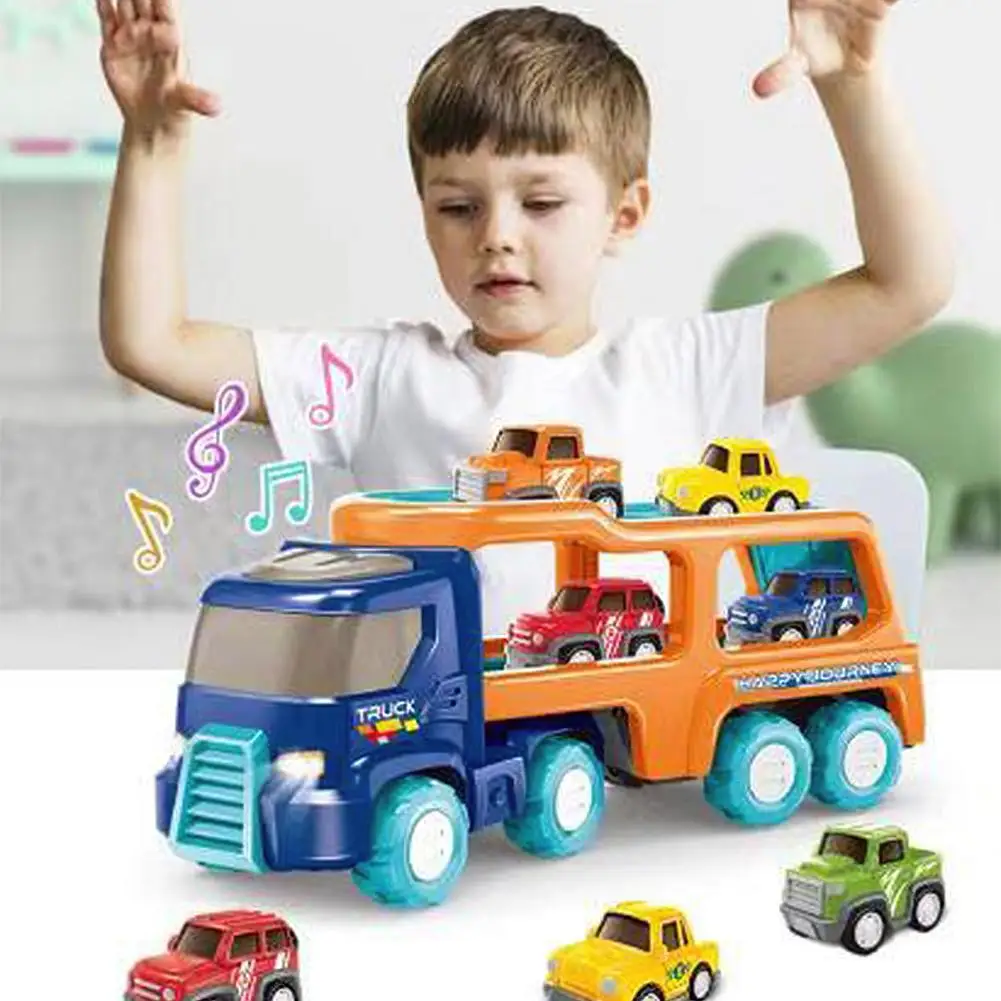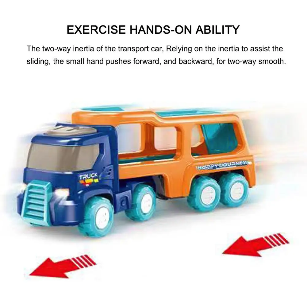 Детская Автомобильная игрушка, транспортный грузовик, игрушечный перевозчик, грузовик, разные транспортные средства, игровой набор, большой транспортный грузовик с 4 милыми оттягивающими назад грузовиками