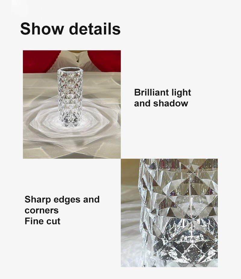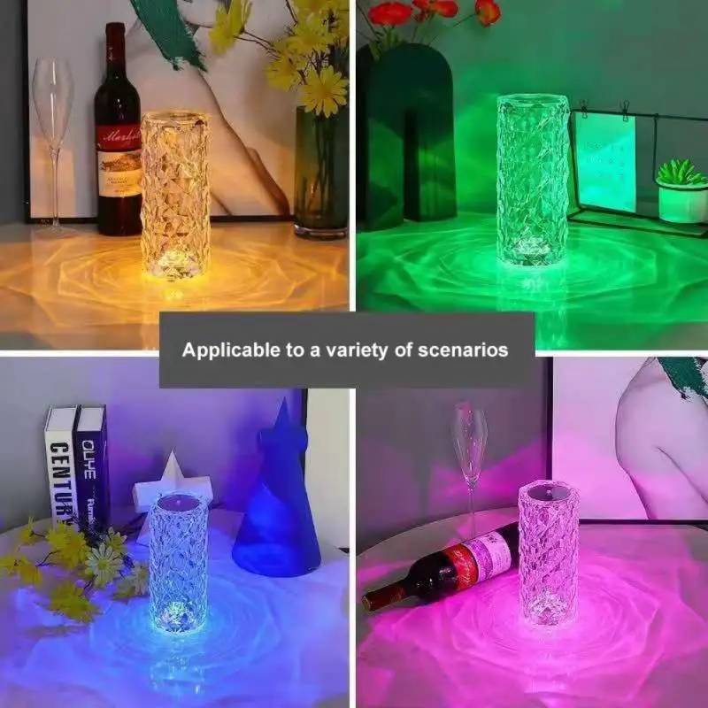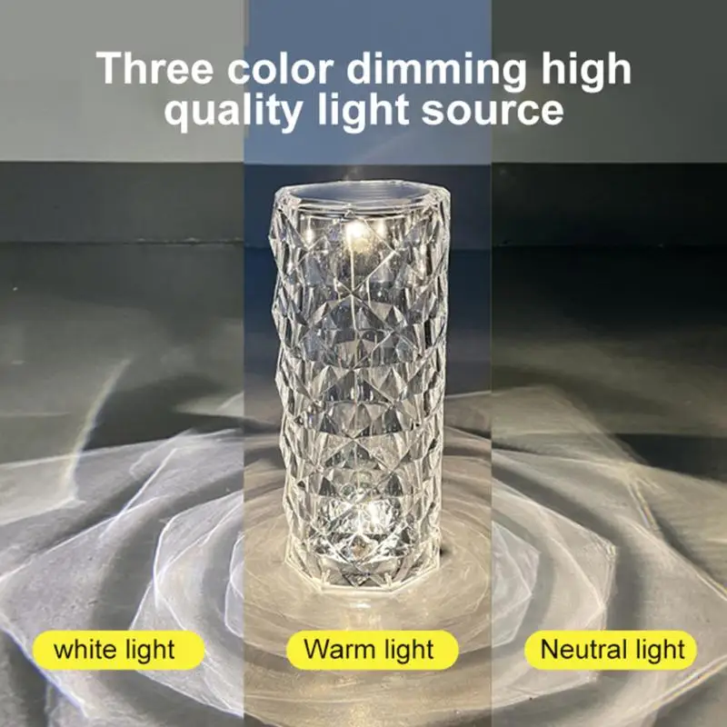Diamond Crystal Table Lamp 3 Colors Adjustable Romantic Rose Light Projector Atmosphere Light Home Bedroom Touch Night Light