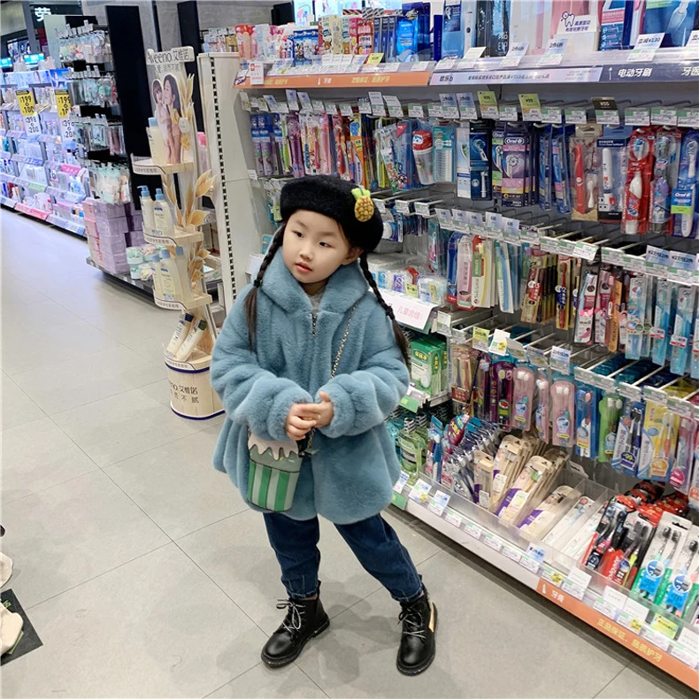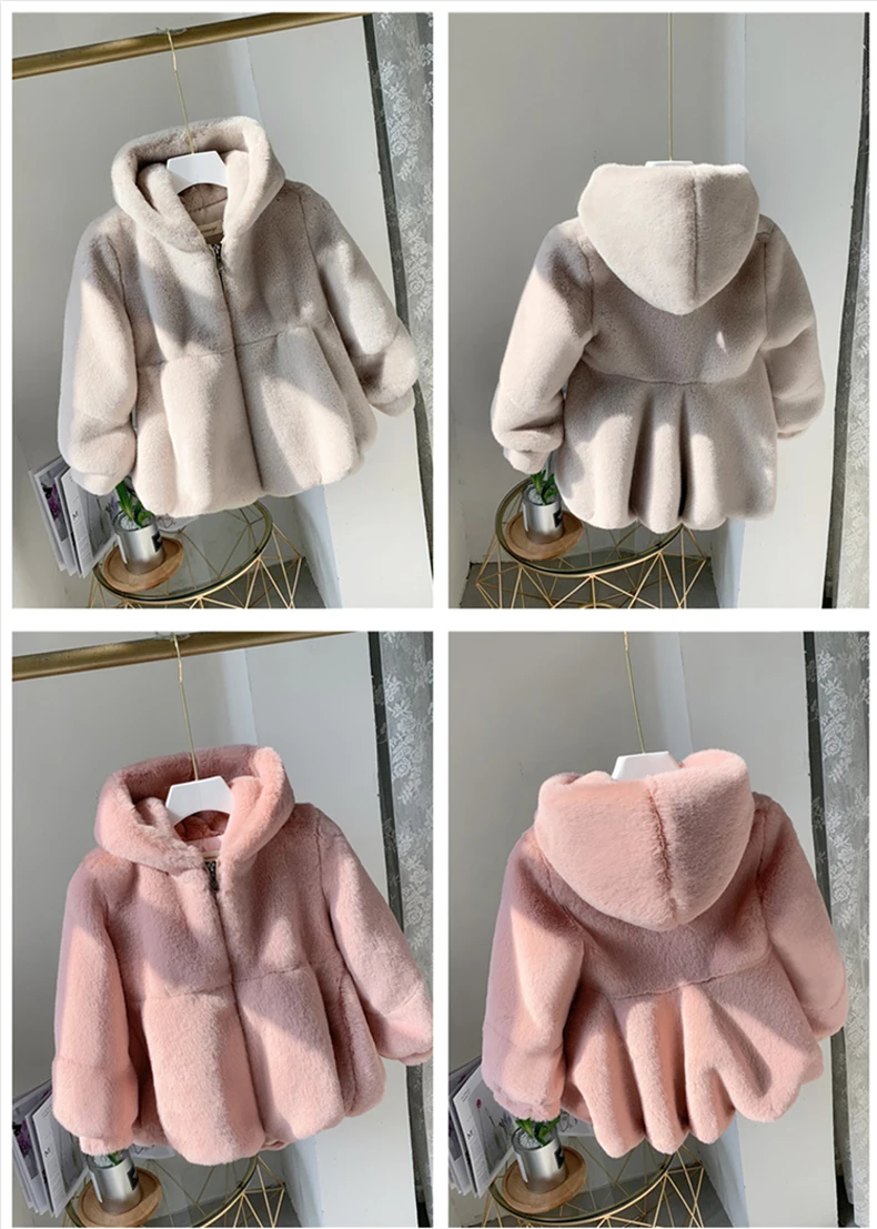 Модные детские зимние теплые меховые пальто для девочек, теплая куртка с капюшоном и длинными рукавами для рождественской вечеринки, Детская меховая верхняя одежда