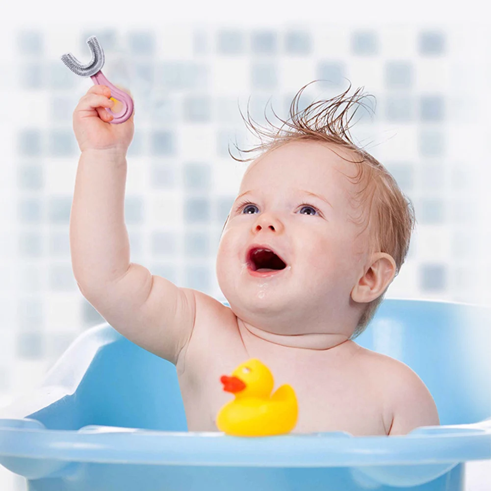 * 1. Эргономичная u-образная головка щетки подходит для формы зубной структуры малыша, может ухаживать за нежными деснами для детей.