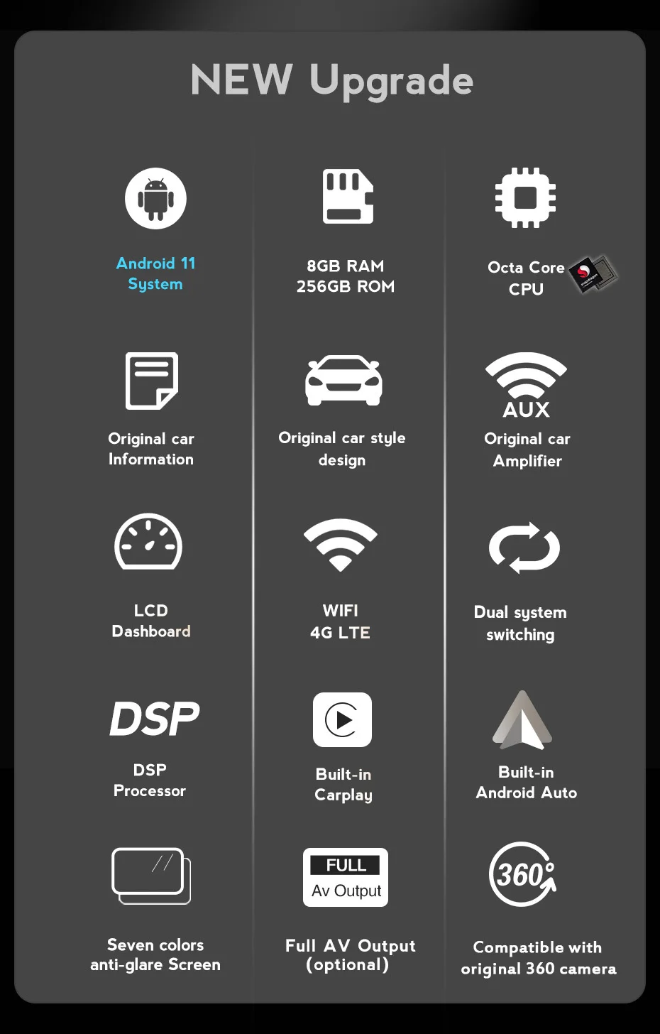 Благодаря сети 4G и встроенному Wi-Fi вы можете наслаждаться серфингом в Интернете независимо от того, где вы находитесь, что делает его возможным для онлайн-навигации/музыки/кино и т. Д. Перед включением устройства вставьте sim-карту.