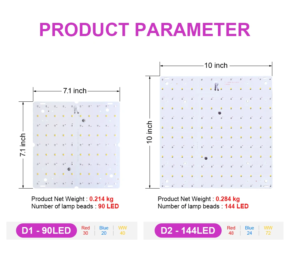 D1-светильник ярче и угол освещения шире и выше PPFD.
