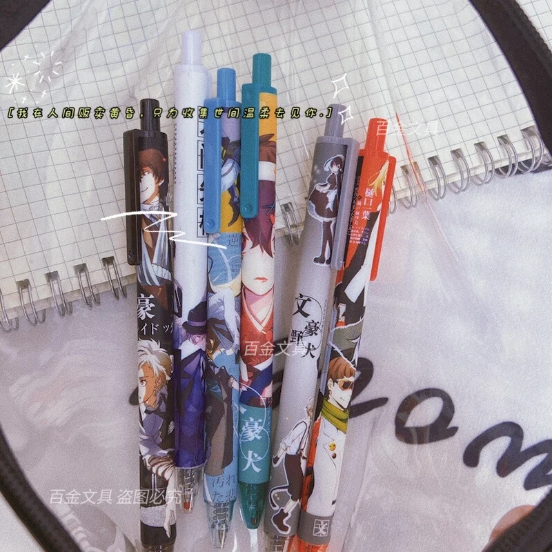 6 шт Бунго бродячих собак ручка Пресс Тип с черными чернилами гелевая ручка 0,5 мм граффити пишущие ручки школы канцелярские 677