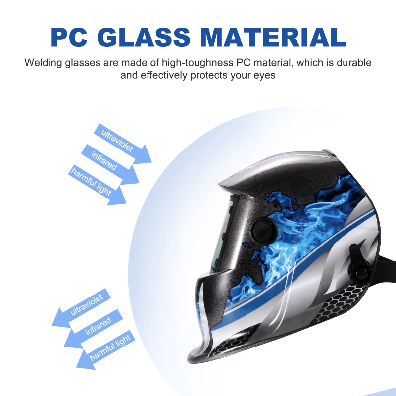 Очки для сваркиВысококачественный поликарбонатный материалКоторыйПрочная прочность и долговечностьЭффективно защищает ваши глаза и долгий срок службы. Даже если на вас нападает что-то пронзительное, стеклоНе сломается, НоСоздайте трещину, похожую на паука,Избегайте повреждения глазОт маленьких очков.