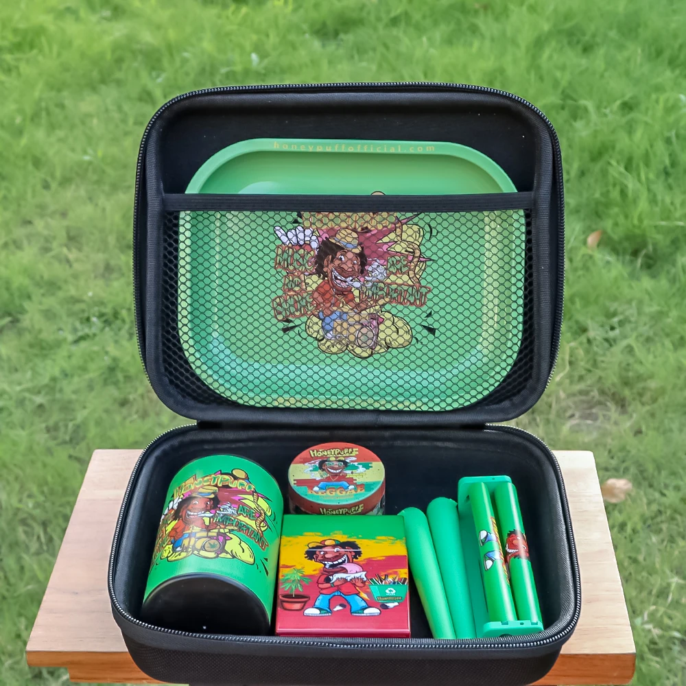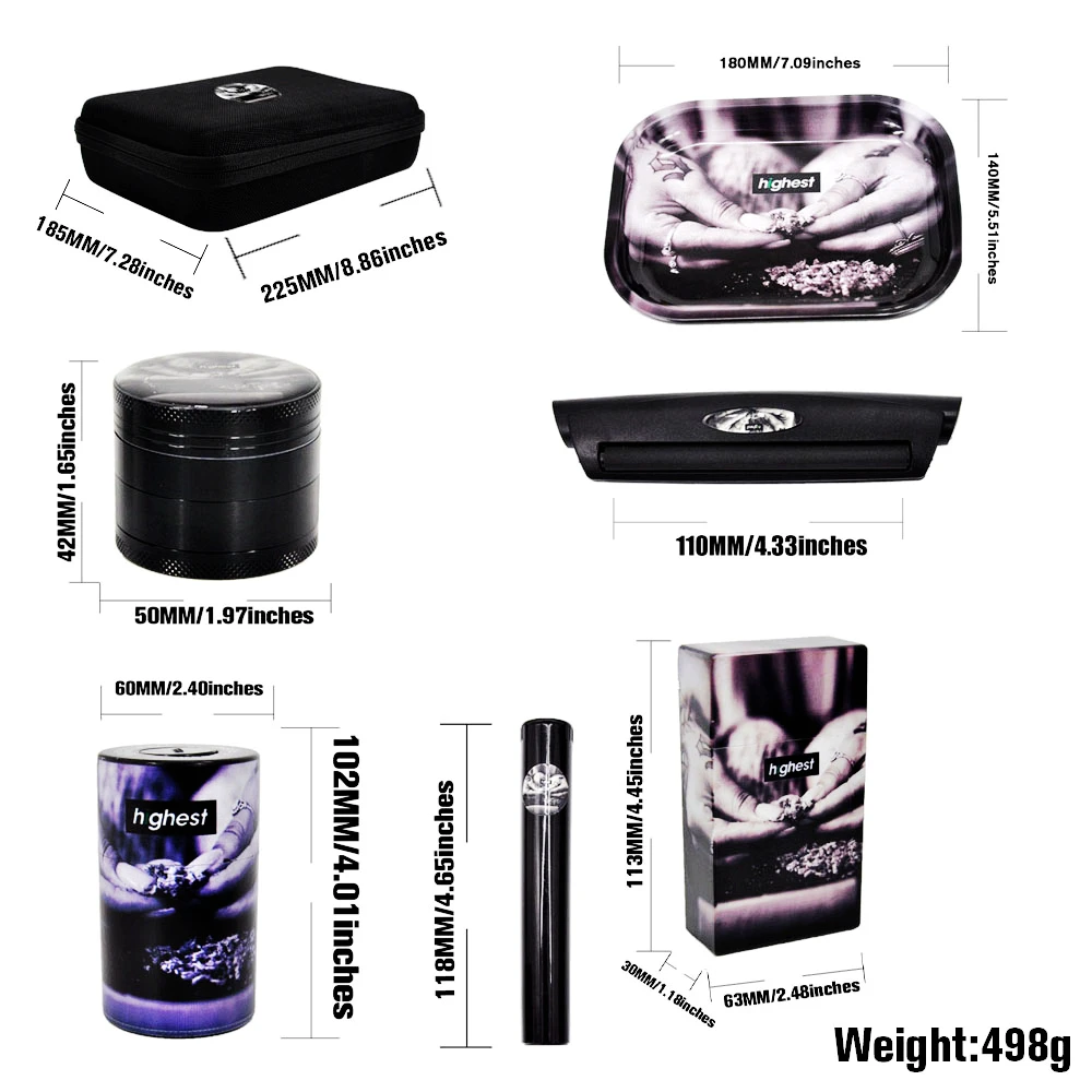 Самый высокий набор табака для курения Материал: высококачественный пластик и цинковый сплав и холст Размер шлифовальной машины для трав: 42 мм * 50 мм размер контейнера для трав: 60 мм * 102 мм размер трубы Doob: 118 мм/4,65 дюйма размер прокатного лотка: 140 мм * 180 мм Размер прокатного станка: 110 мм/4,33 дюймов Размеры сигареты Чехол: 29 мм * 61 мм * 108MM Чистая Вес: 498 г/уп Применение: курении кальяна на упаковка для табака включает в себя: 1 х высокий листового металла Лоток 1 x Чехол для сигарет 1 x контейнер для трав 1 x Точильщик для трав из высочайшего металла 1 x точильный станок для трав высшего качества 2 x трубка высокого качества 1 x сумка для холста высшего качества