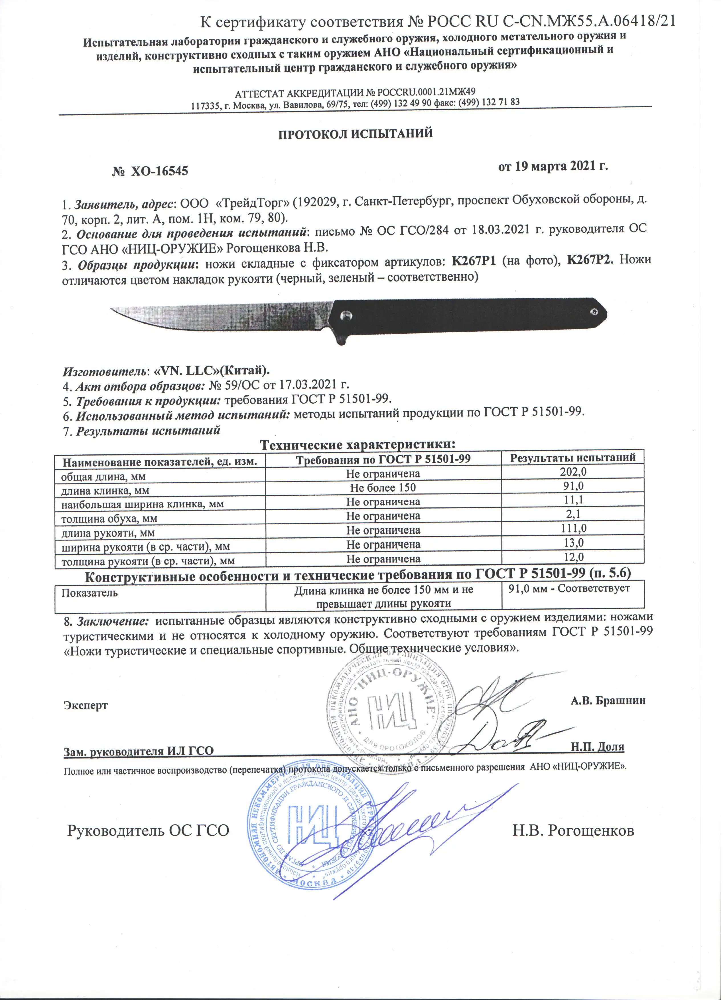 Длина клинка (мм)