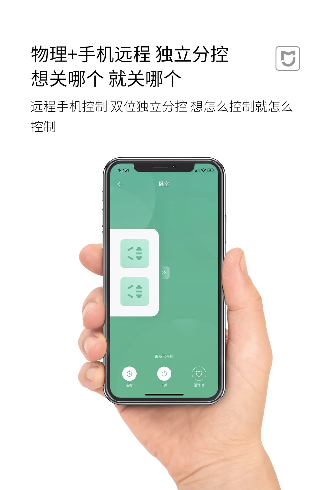 1.The socket is connected to the Internet through the WIFI wireless network. You can check the on/off status of the socket through the Mijia APP or Xiaoai to make the home appliances smart