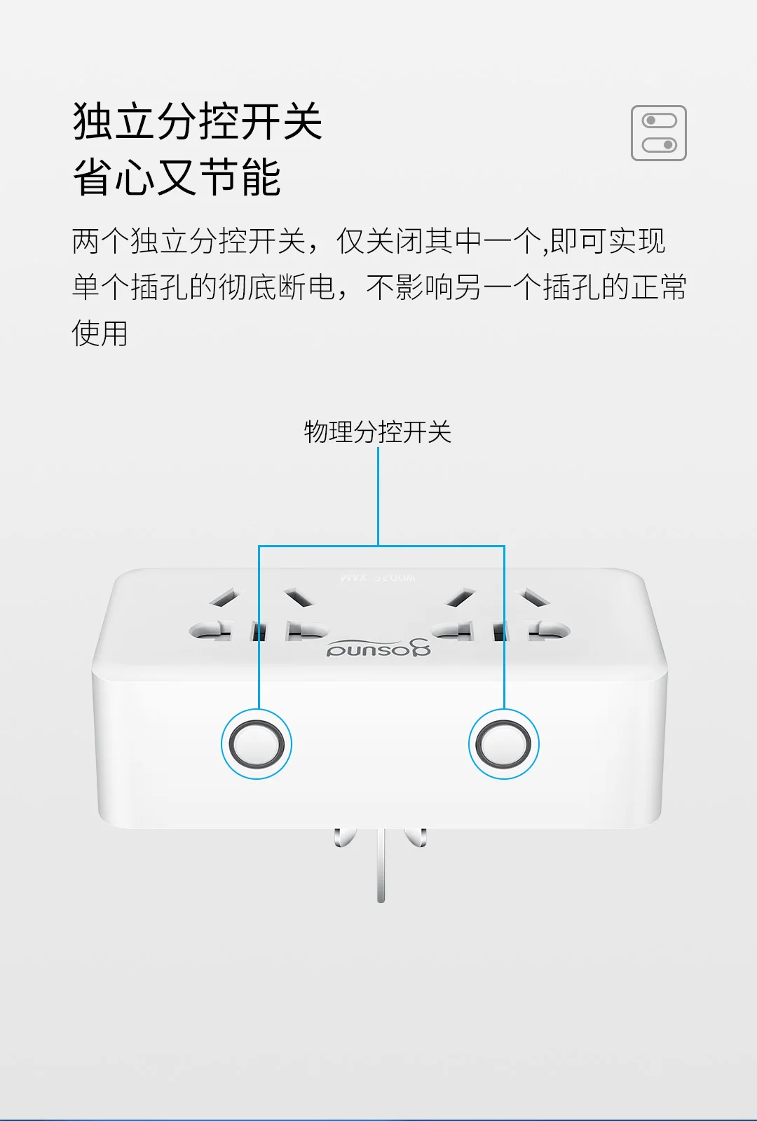 YouPin Gosund WiFi 2in1 Smart Plug Socket Voice Control Phone Remote Intelligent linkage Independent Sub-Control Socket timing For Mijia APP