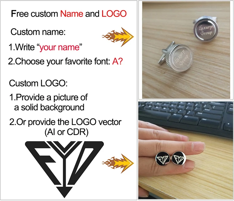 2. Если вы хотите заказать логотип, изображение должно быть четким, и мы не можем выгравировать красочную картинку на запонках.