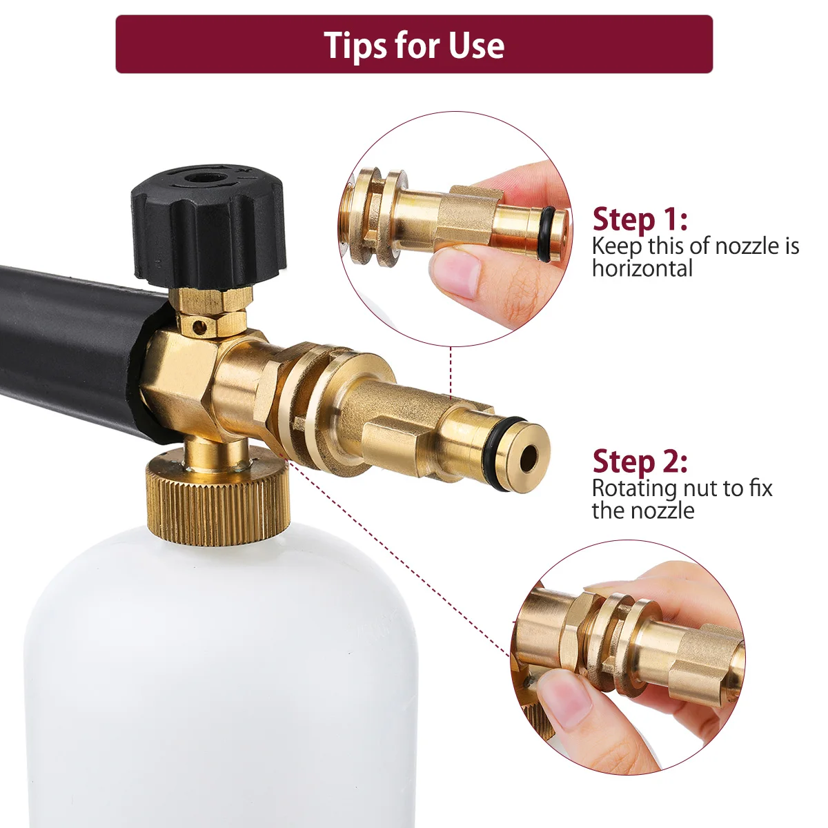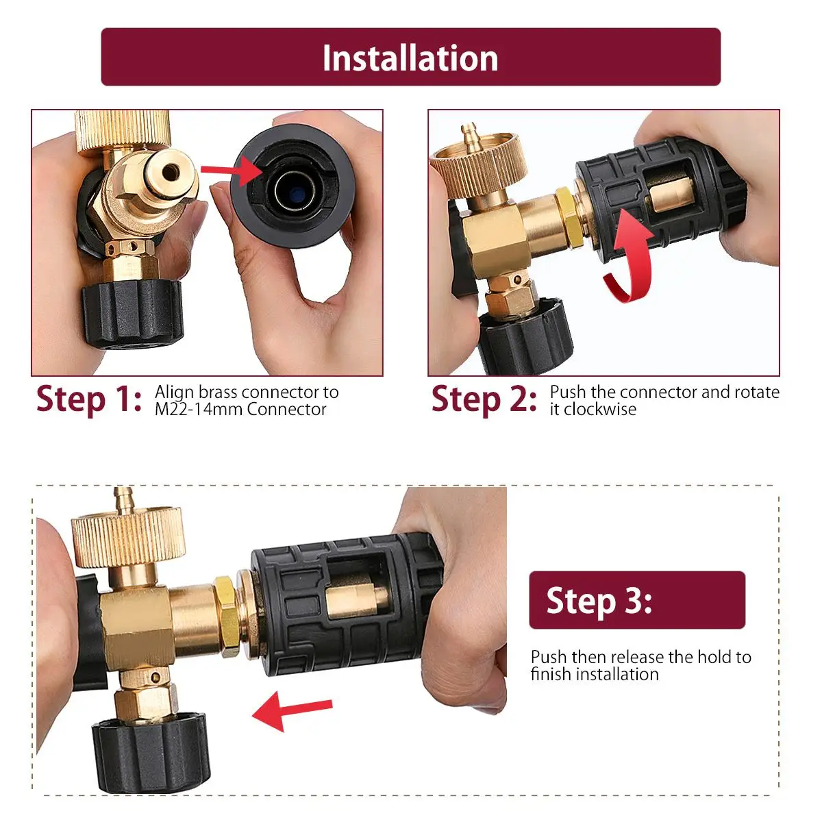 2. С быстроразъемом 1/4 ", пожалуйста, следите за вашей машиной, Подключайтесь к пистолету для мойки под давлением или удлинительному шлангу, не подходите для садового шланга.