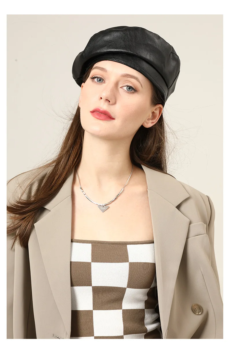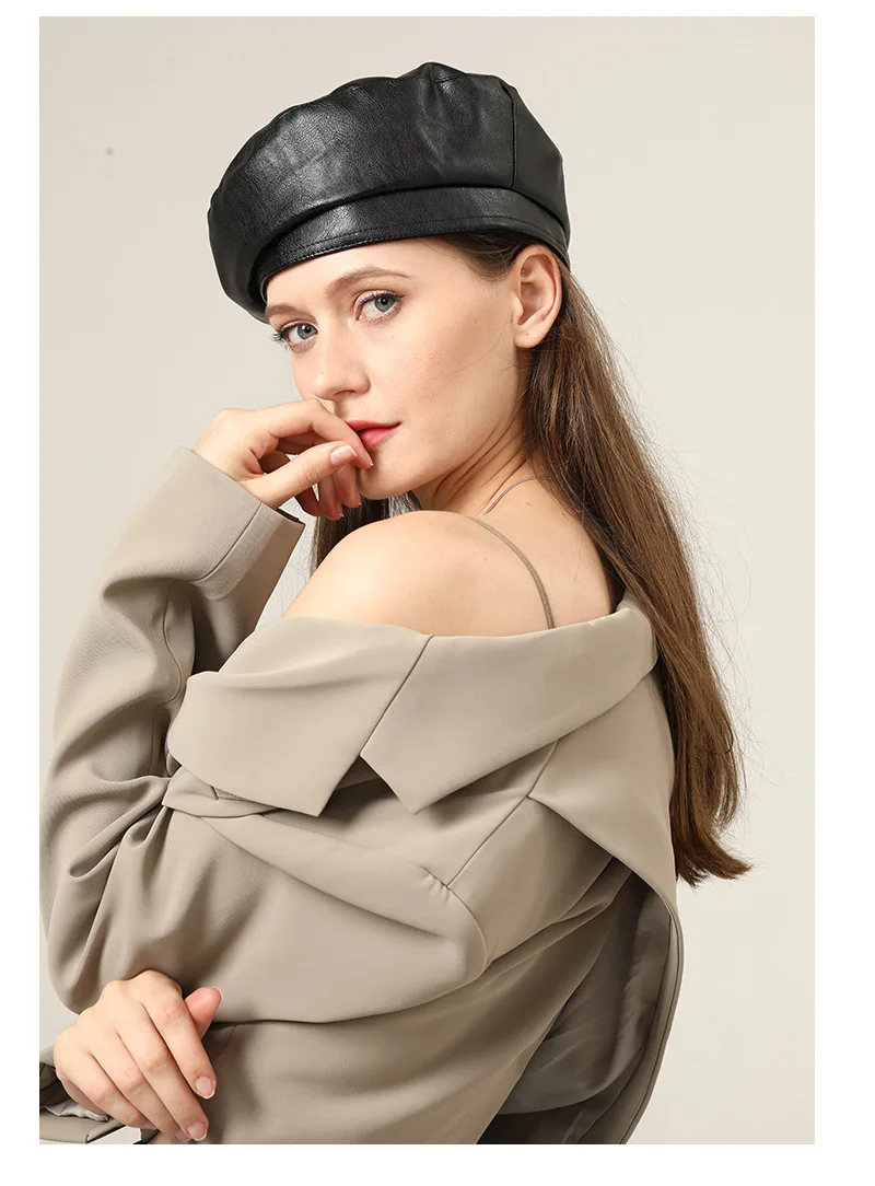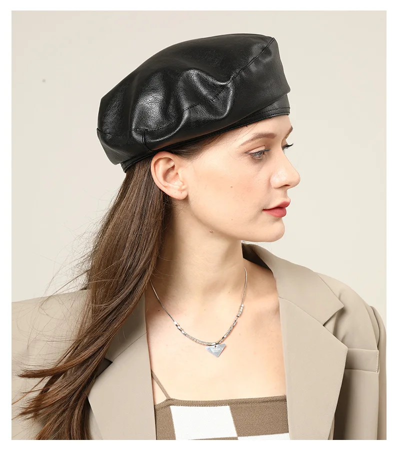 Модные кожаные весенне-осенние береты в Корейском стиле для женщин и девочек, Элегантные Изысканные винтажные Женские Простые береты, ретро шапки, шапки