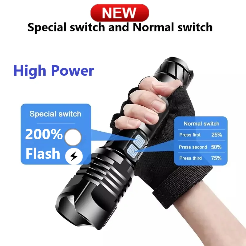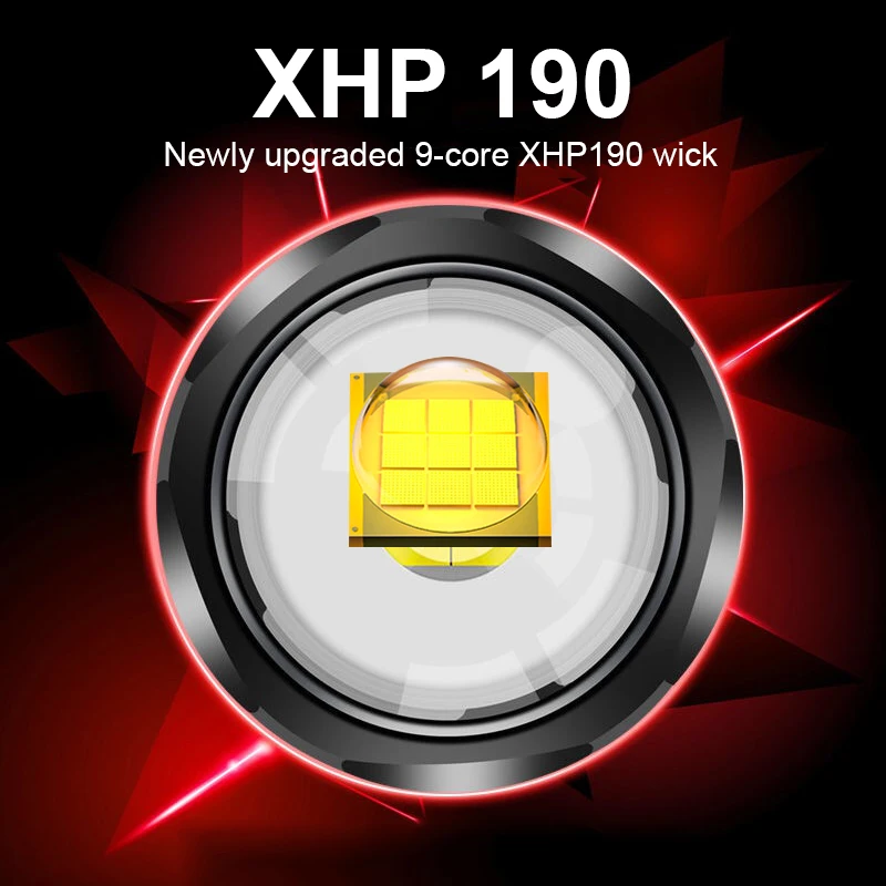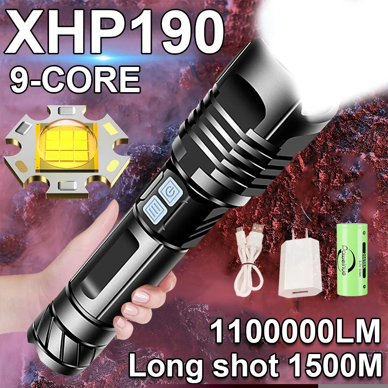 600000 Glare XHP190 Super Powerful Led Flashlight 18650 26650 Torch Rechargeable USB Tactical Flashlight High Power hunting camping Working Flash Light