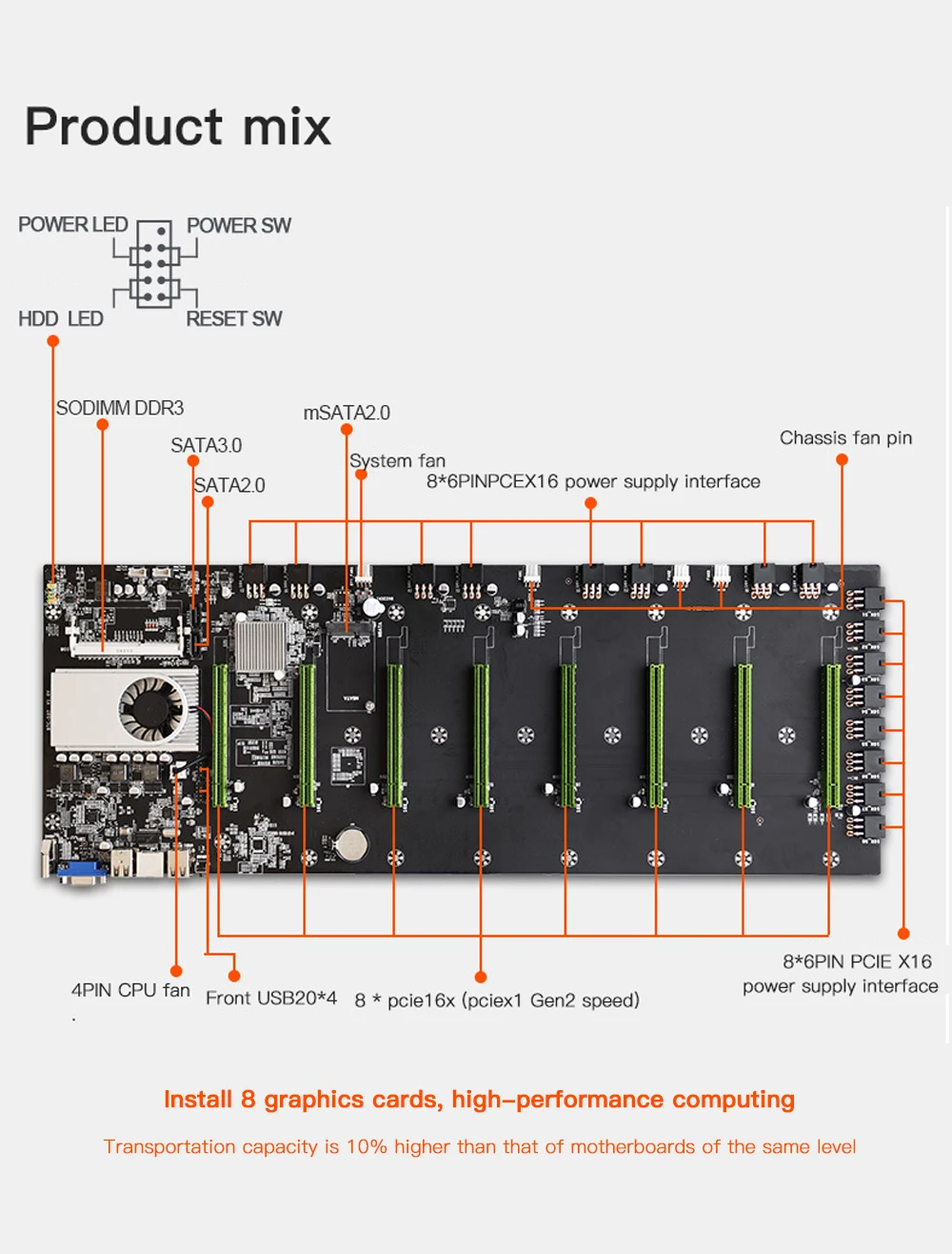 ◆ 8*6pin PCIEx16 слот для видеокарты