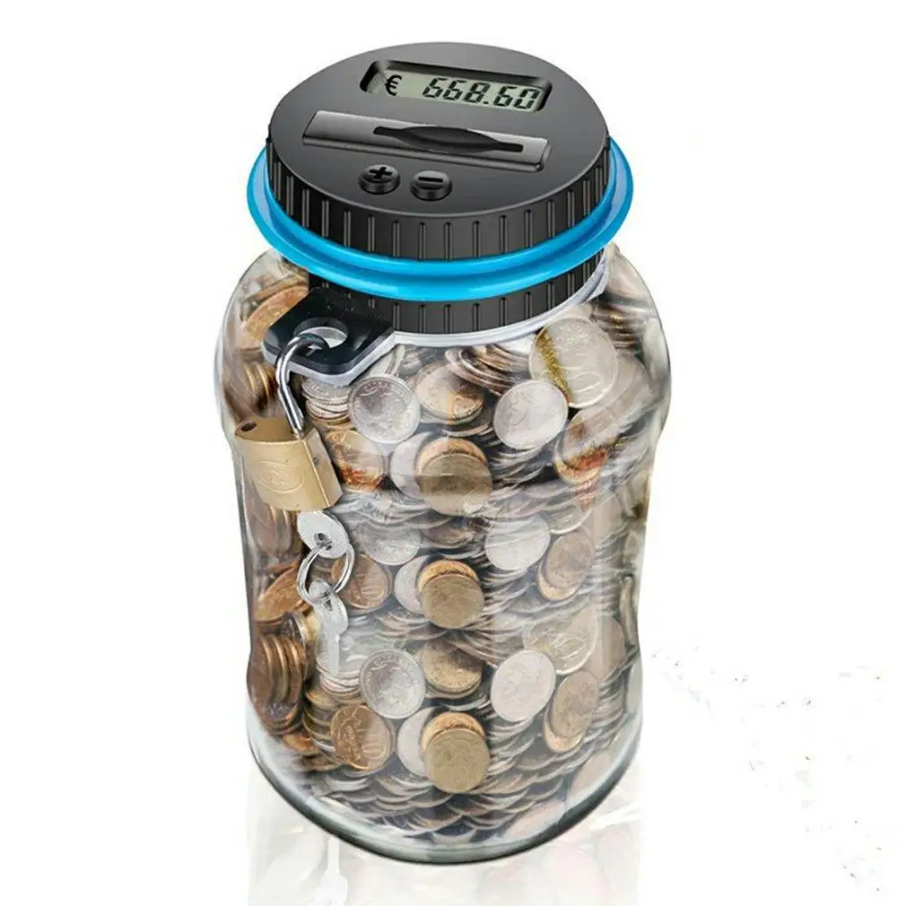 4. Легко читать: Эта прозрачная банка имеет ЖК-экран на крышке помогает считать ваши монеты, когда они проскальзывают через слот. Он точно подсчитывает ваши деньги и отображает общую сумму каждого депозита.