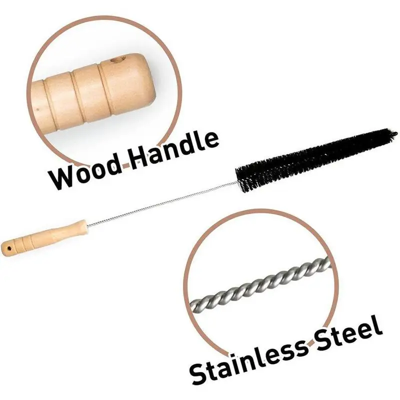 Щетка для радиатора состоит из проволоки из нержавеющей стали, щетины pp и деревянной ручки.