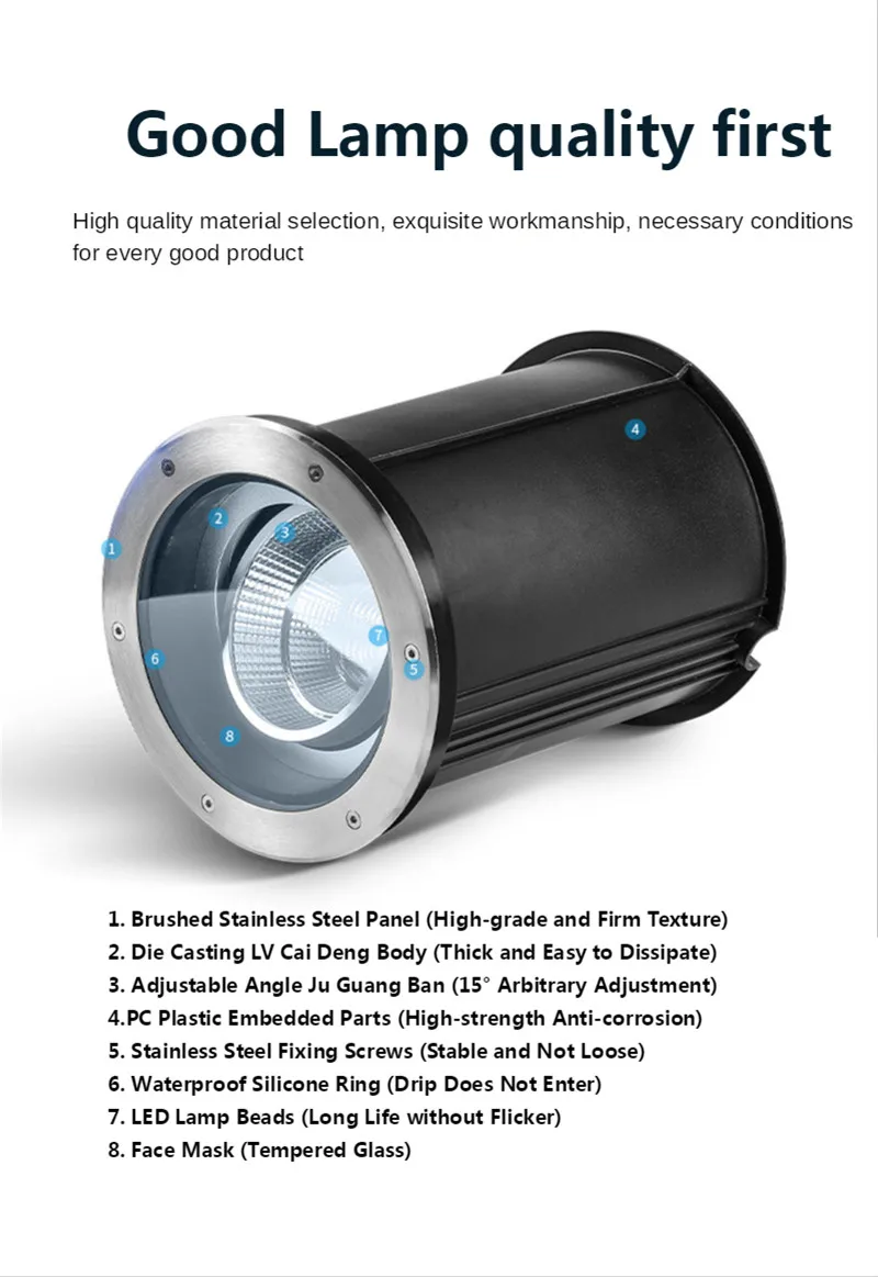 Led COB Регулируемый угловой напольный светильник, скульптурный Точечный светильник, открытый водонепроницаемый круглый встраиваемый поляризационный светильник из нержавеющей стали, ступенчатый светильник