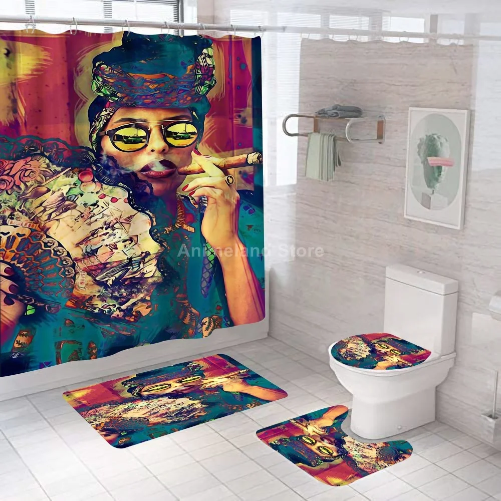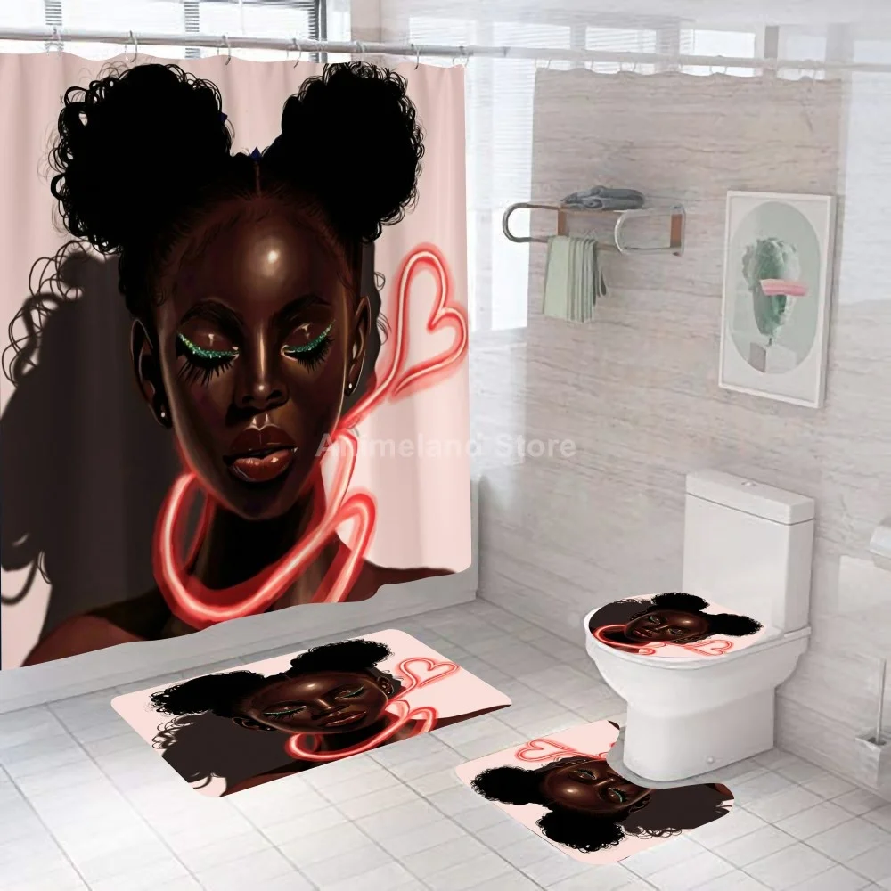 4PCS Curtain Set (W71xH71in 180x180cm Shower Curtain*1 3PCS Mat Set*1)
