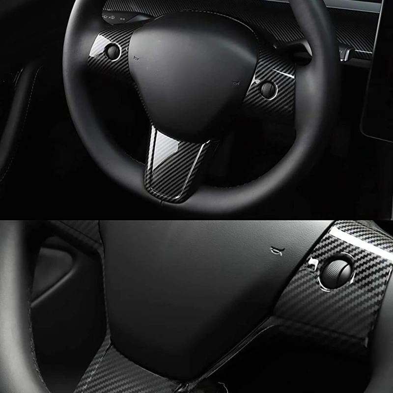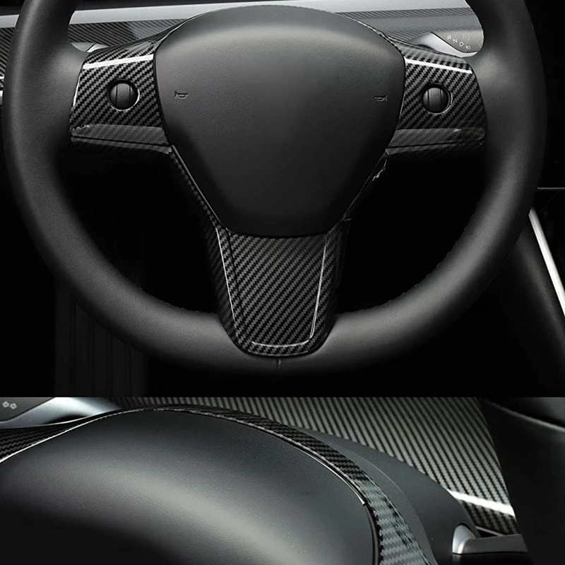 Чехол для салона автомобиля Tesla Model 3 Y 2017-2020 углеродное волокно защитная рамка для рулевого колеса аксессуары для накладной отделки
