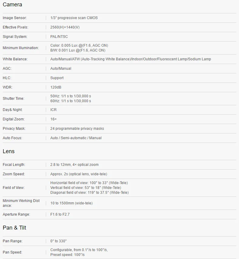 Возможность панорамирования и наклона позволяет камере следить за интересующими зонами