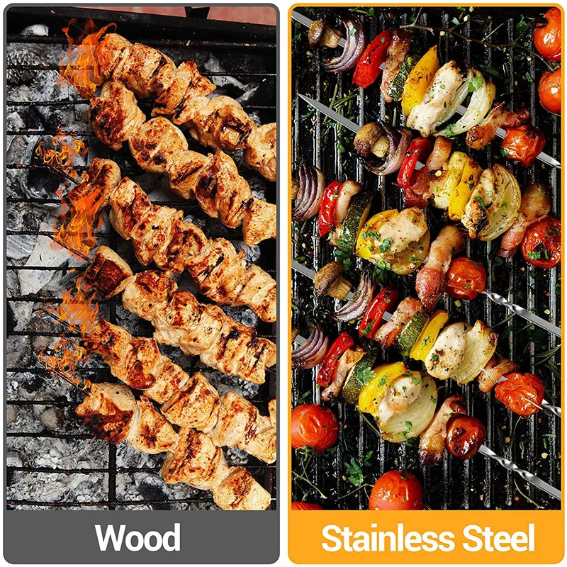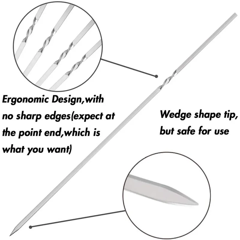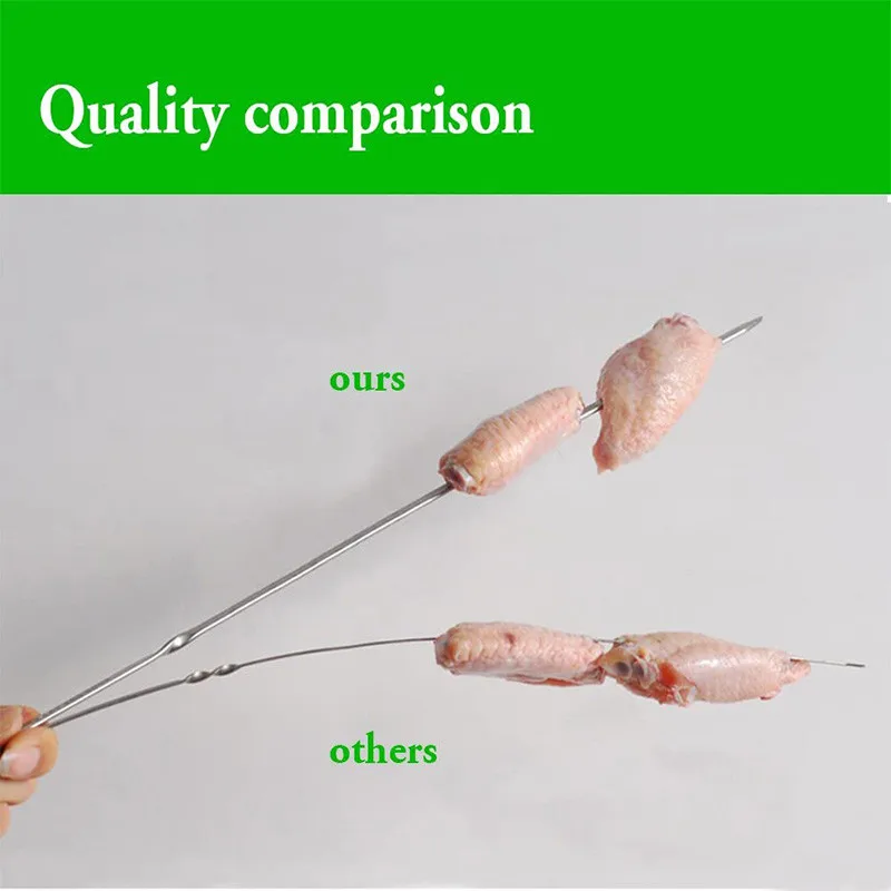 Коб-шпагат плоский и широкий. Плоские палочки для барбекю предотвращают перекосы пищи от спиннинга или движения вокруг, когда переворачивают шашлык Шашлыка на гриле. Шашлыки для барбекю из нержавеющей стали обеспечивают полное вращение, поэтому еда может равномерно нагреваться и приправляться со всех сторон. Угловые кончики этих шашлыков для кебаба помогут вам легко накапливать, не разбрызгивая еду. Но это не слишком острое, так что вы не будете мешать себе.