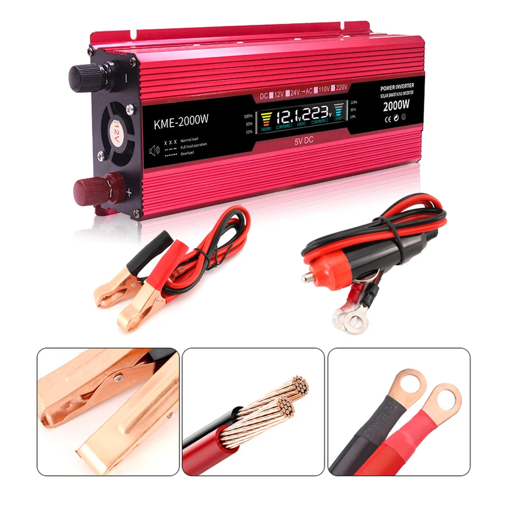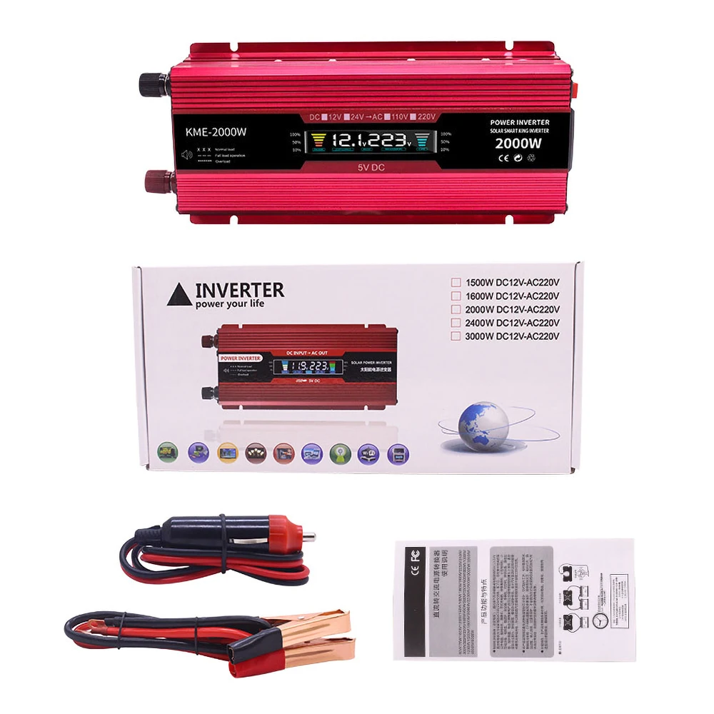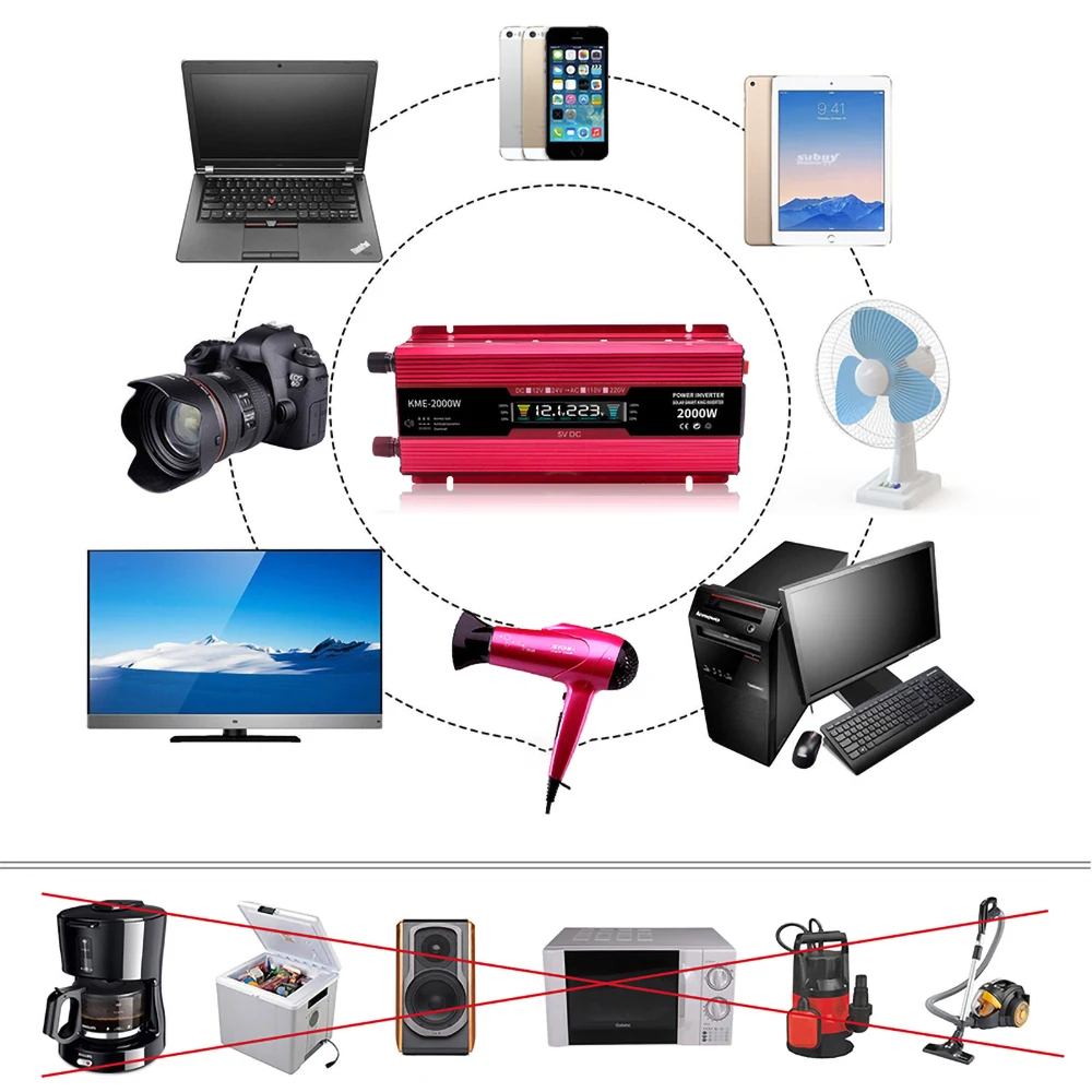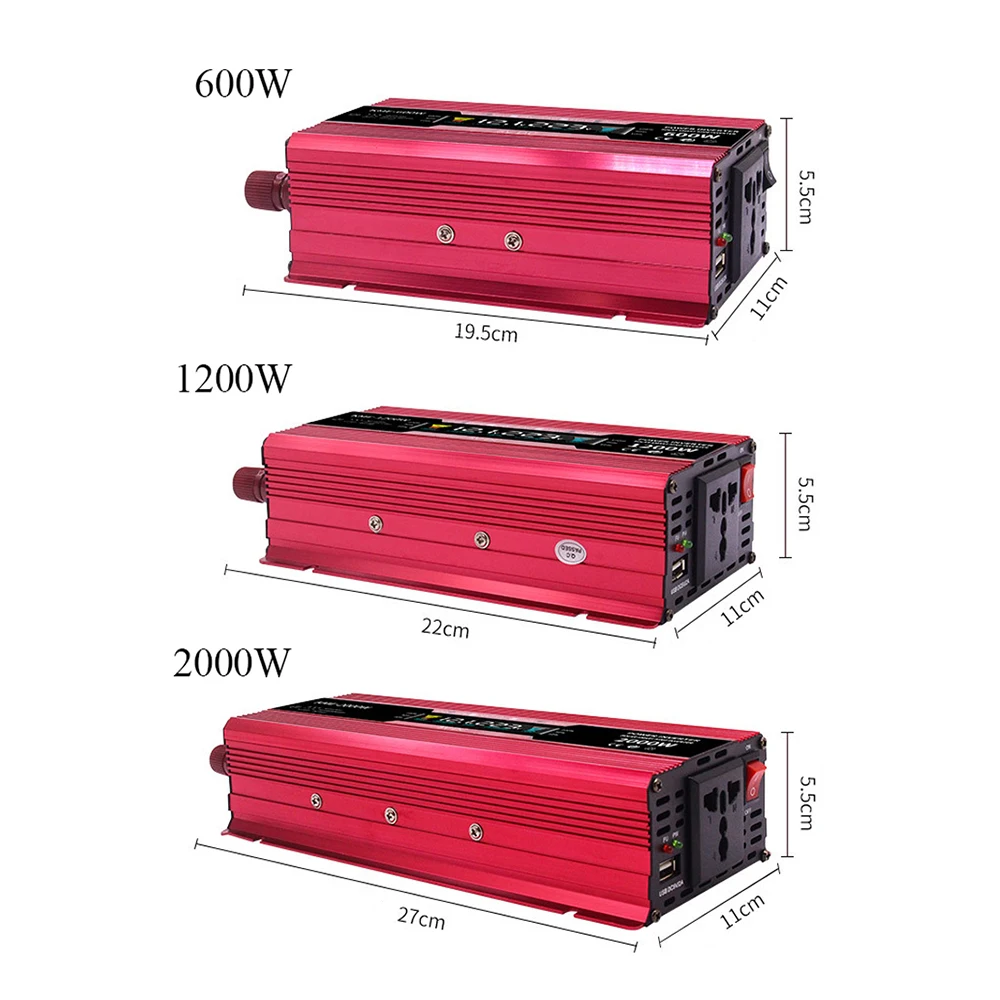 "Powerful output: Convert DC 12V power to AC 110V 60Hz. Provide 400W/600W/950W continuous correction sine wave power and 600W/1200W/2000W peak power. Equipped with 2 AC power sockets and 1 USB port for Multi-purpose charging. High efficiency: conversion efficiency> 90%.