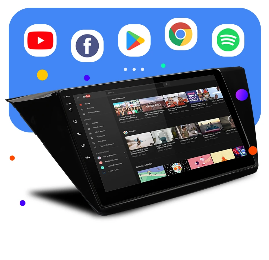 Поддерживает онлайн-приложение: Play Store, Youtube, Spotify, maps...