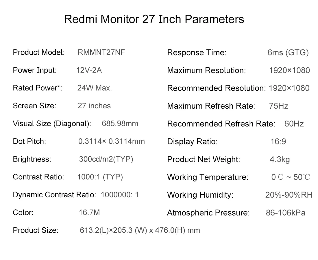Монитор Redmi 27 дюймов параметры