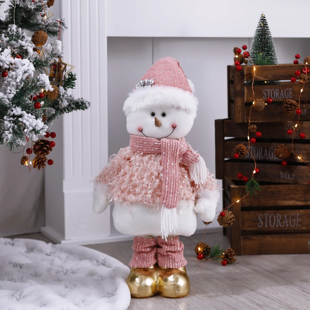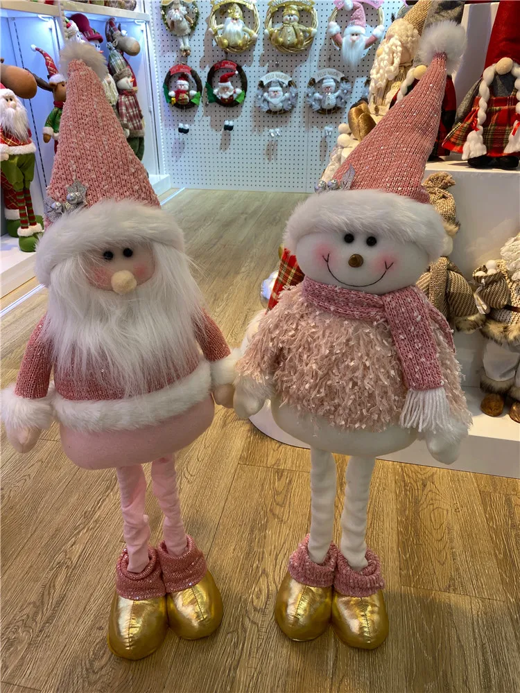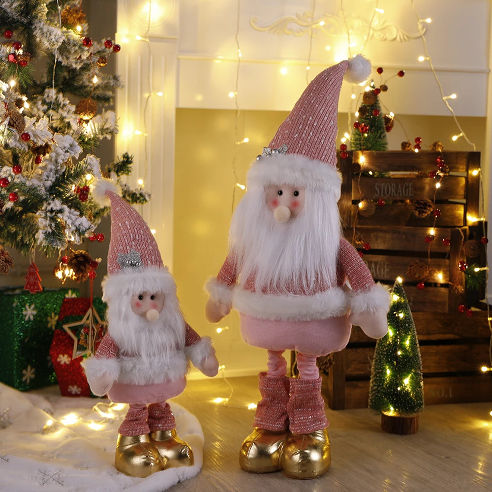 Розовые выдвижные рождественские украшения Санта Клаус Снеговик длинные ноги стоящая телескопическая кукла игрушка домашний Рождественский Декор новогодние подарки