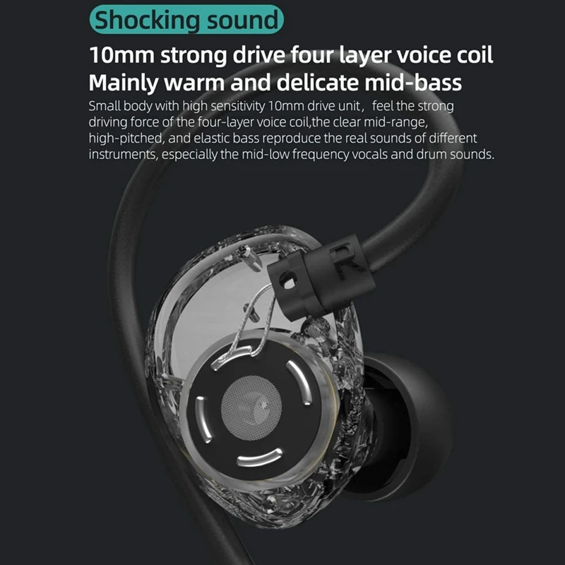 [10mm strong drive four layer voice coil]Small body with high sensitivity 10mm drive unit, feel the strong driving force of the four-layer voice coil, the clear mid-range, high-pitched, and elastic bass reproduce the real sounds of different instruments, especially the mid-low frequency vocals and drum sounds.