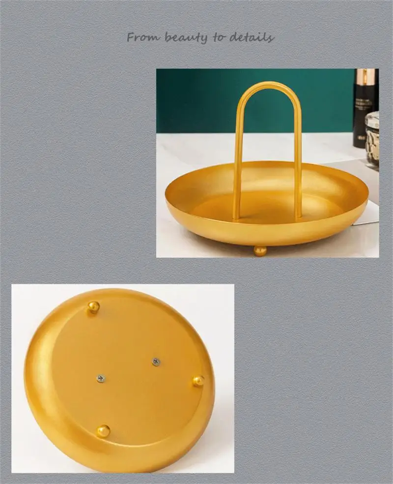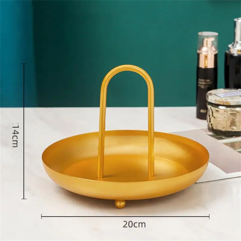 Новинка 2021, настольный лоток для хранения в скандинавском стиле, металлические круглые подносы для ювелирных изделий, для гостиной, кухни, стола, еды, закуска, тарелка с ручкой, домашний декор