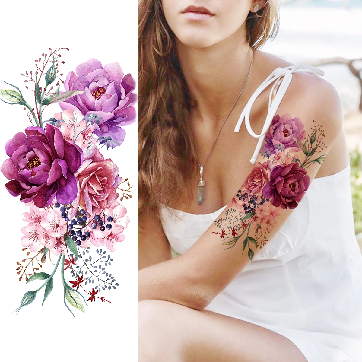 Акварель Пион цветок временные татуировки для женщин взрослых Колибри бабочка Далия поддельные татуировки предплечья моющиеся татуировки наклейка