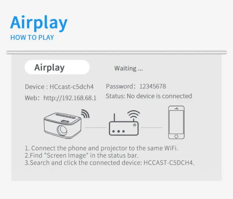 1. В той же функции экрана Мобильный телефон требует, чтобы мобильный телефон и проектор были в той же сетевой среде.