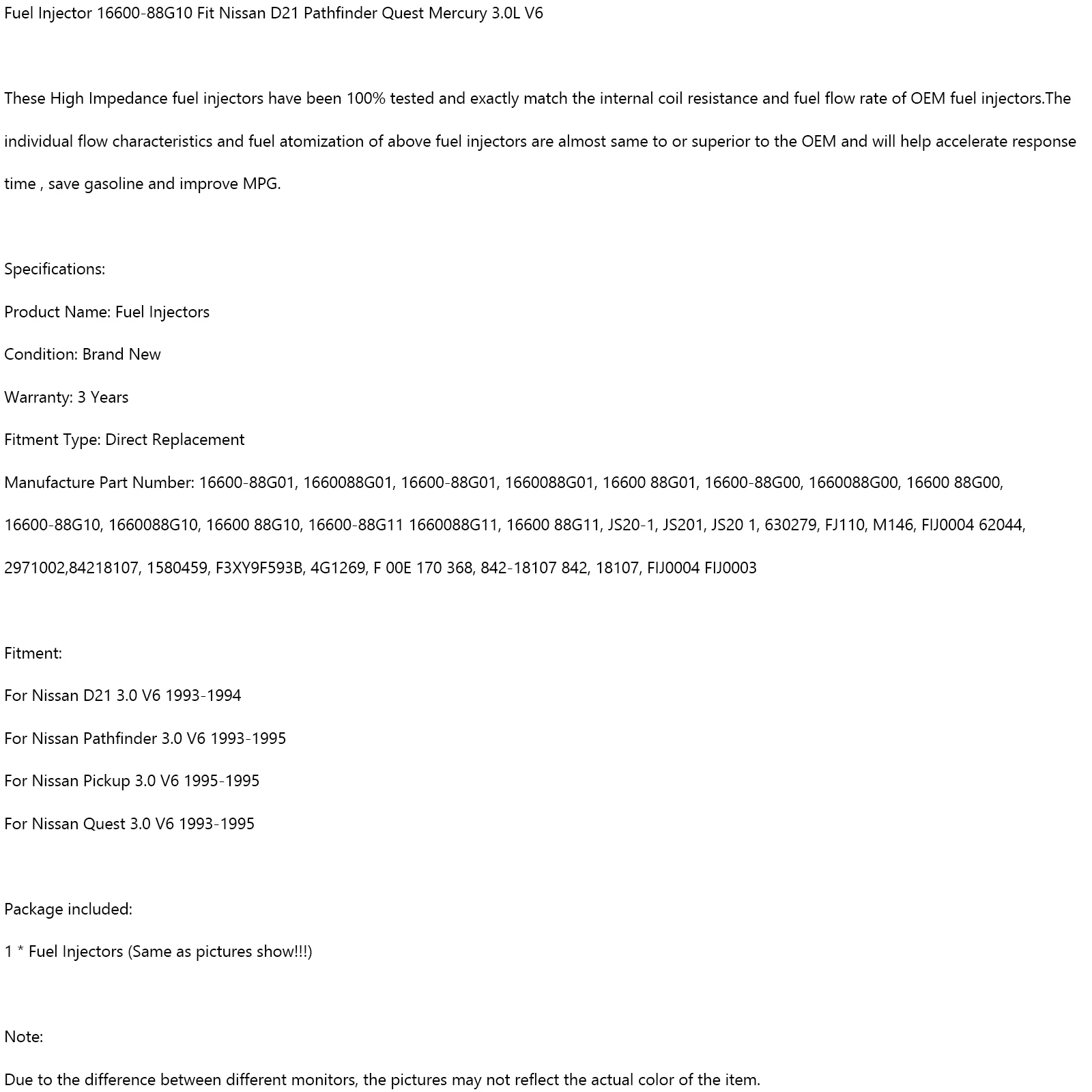 Топливный инжектор 16600-88G10 Подходит для Nissan D21 Pathfinder Quest Mercury 3.0L V6