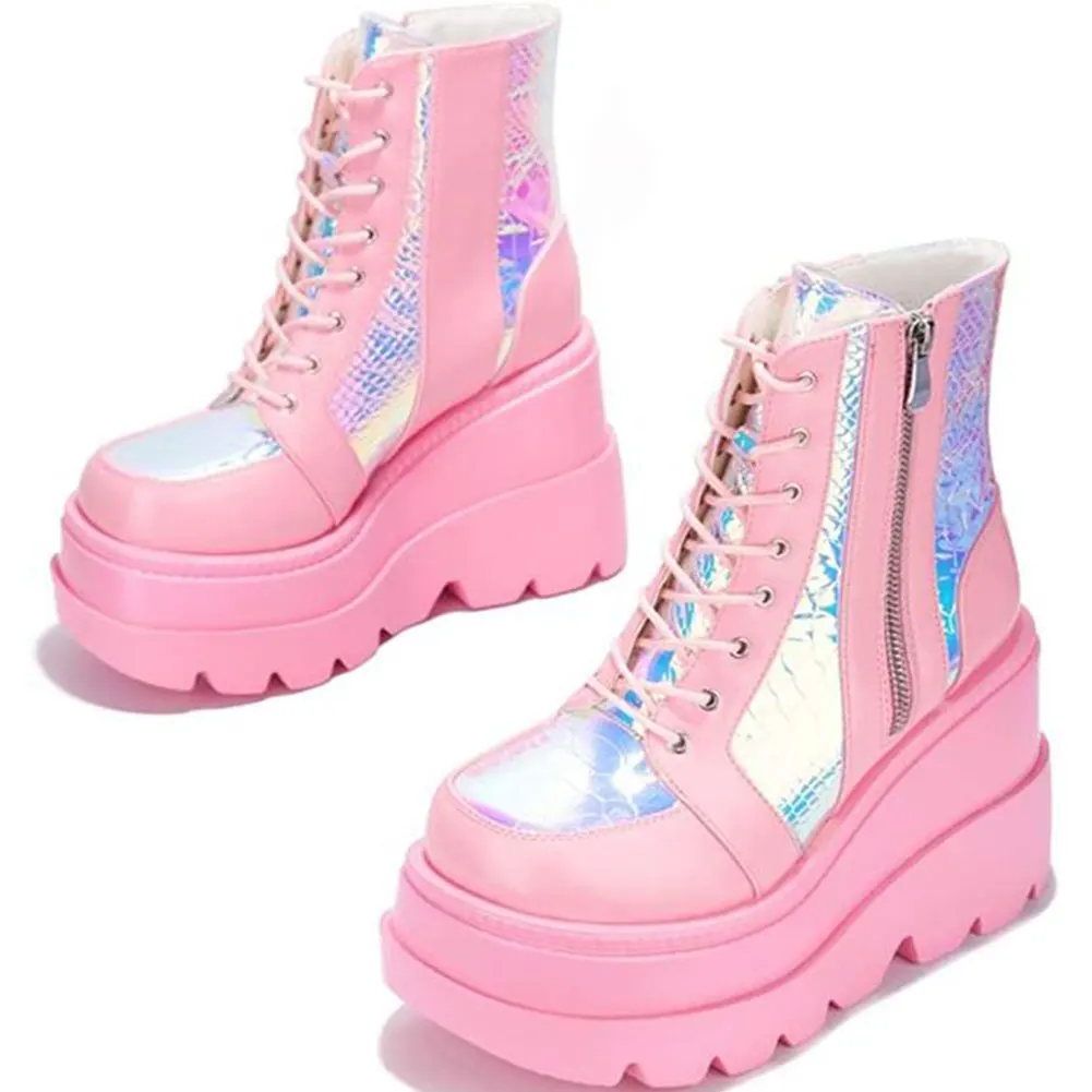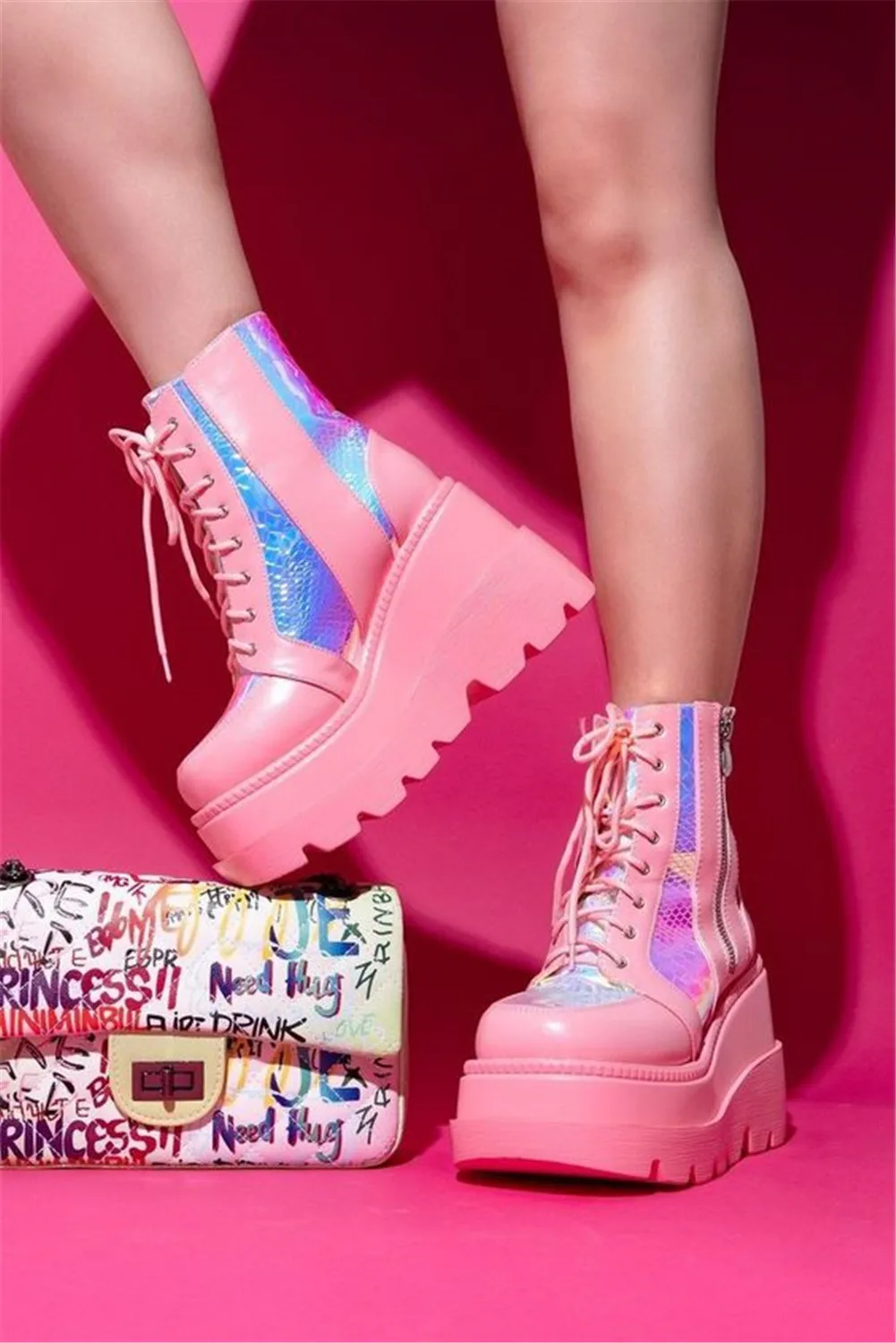 Стиль 3:{2021; Красивые Дизайнерские ботильоны на танкетке для отдыха; Женская обувь на платформе;}