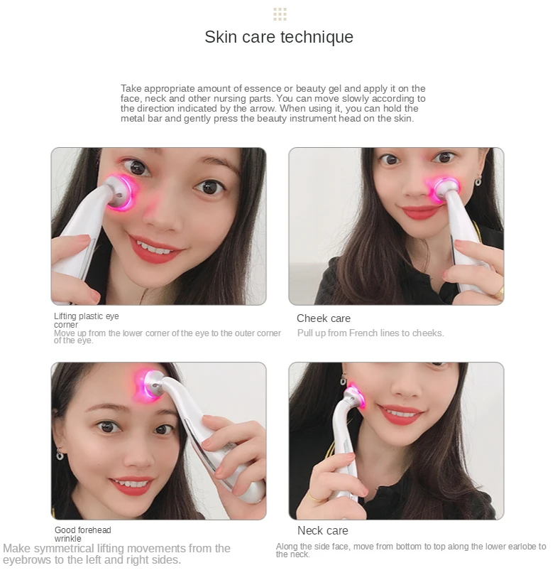 RF, вибрации и EMS глаз массажер палочка-37 °C до 45 °C с подогревом Вибрирующая Массажная головка-красный светодиод устройство-мешки для глаз и темные круги удаления-простые кнопки управления и эргономичный дизайн