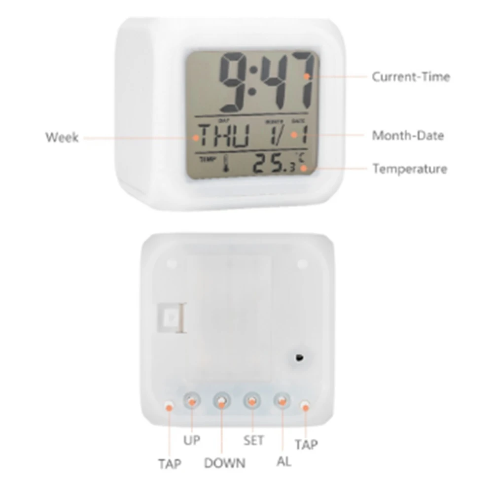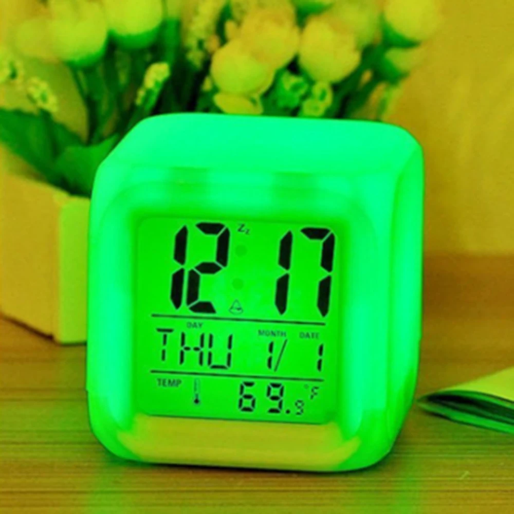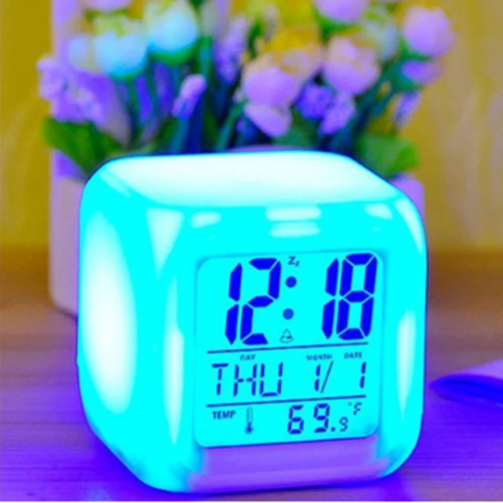 Многофункциональный 7 цветов светодиодный цифровой будильник с датой будильник термометр Настольный будильник в виде кубика ночник светящийся