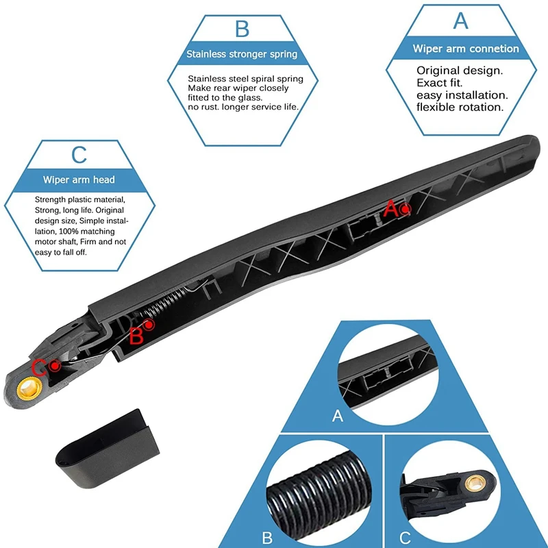 [Высокое качество]: Прочная рама, прочная пружинная пружина из нержавеющей стали; Идеальная замена для защиты заднего лобового стекла от воды и грязи.
