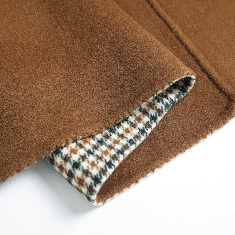 Это пальто изготовлено из высокопрочной морозостойкой овечьей шерсти. Шерсть имеет плотную текстуру, прочность, устойчивость к холоду, мягкие и гладкие характеристики, мягкое и плотное ощущение, удобный верх, светильник и тяжелое ношение.