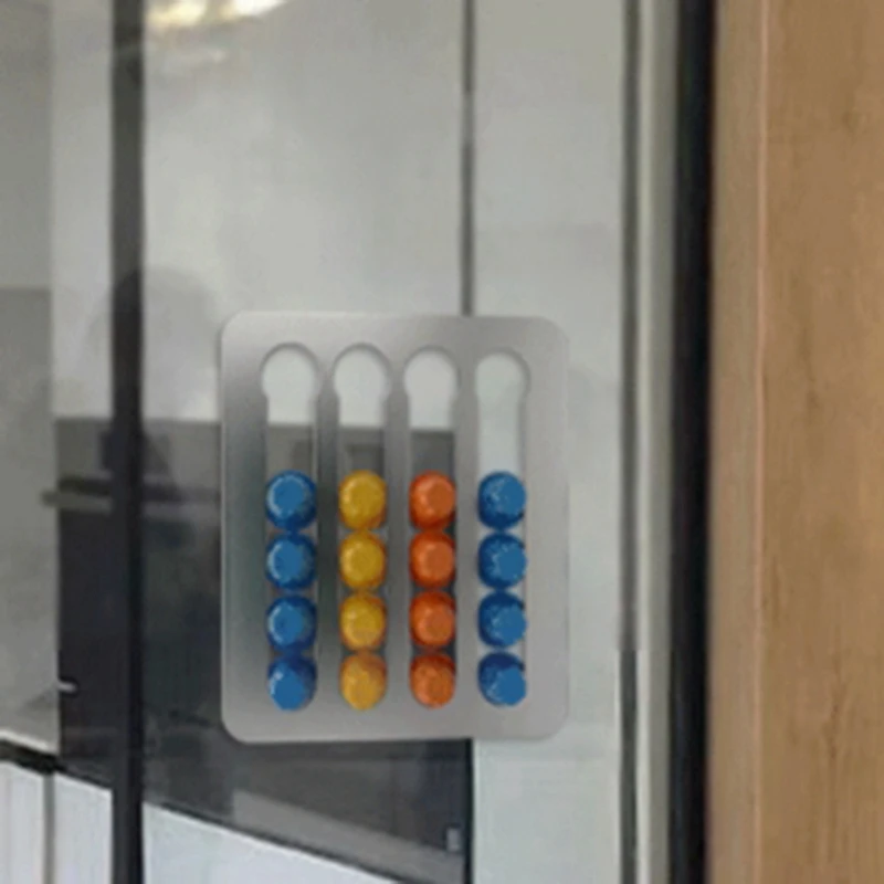 This elegant coffee capsule storage rack is a perfect way to save precious kitchen counter space. Slim and lightweight, you can easily install it vertically or horizontally on the kitchen wall, cabinet door, under the cabinet, and even on the refrigerator!
