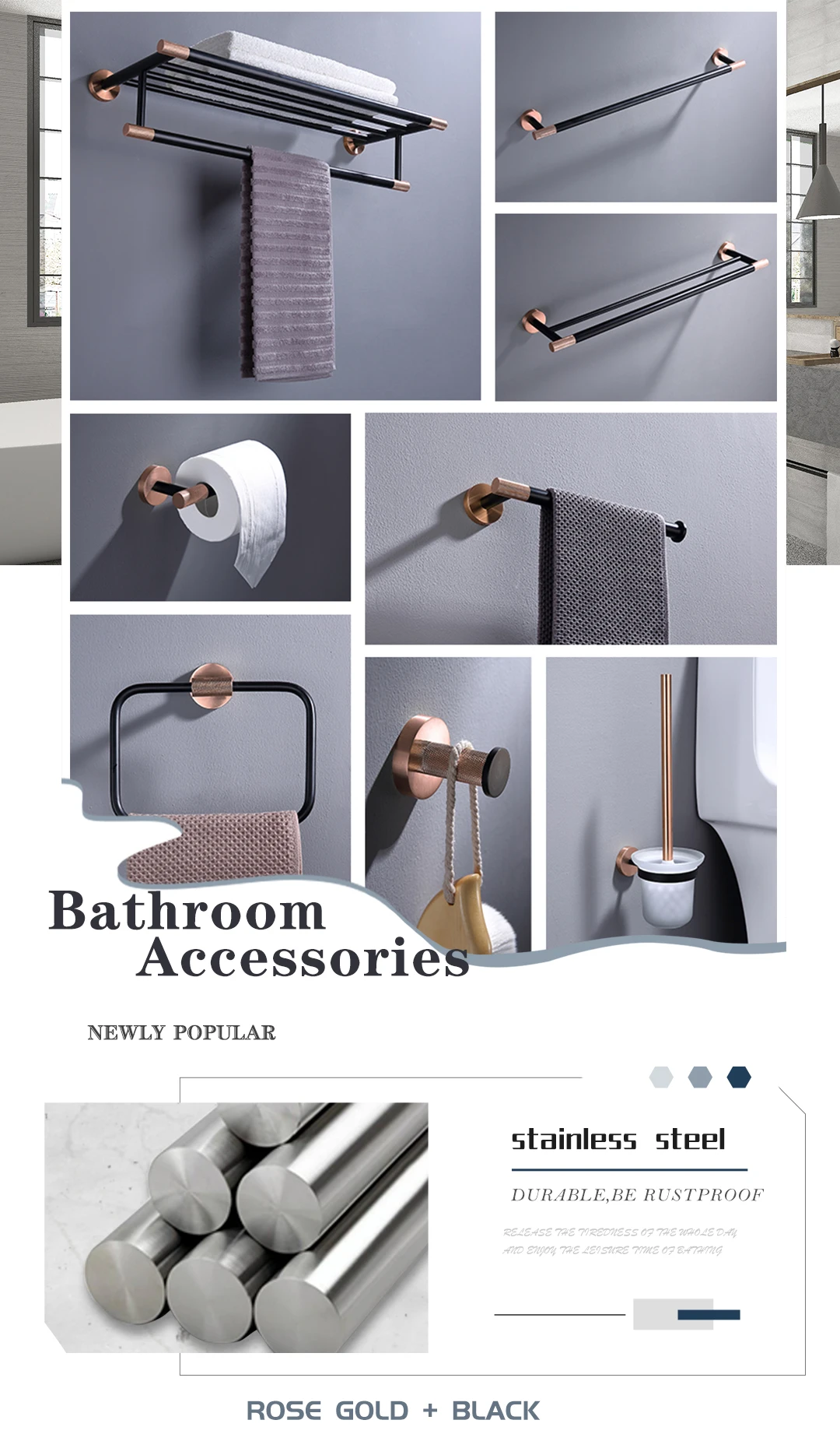 Аксессуары для ванной комнаты розового и золотого цвета, набор оборудования, вешалка для полотенец, держатель для туалетной бумаги, крючок для полотенец, мыльница, туалетная щетка