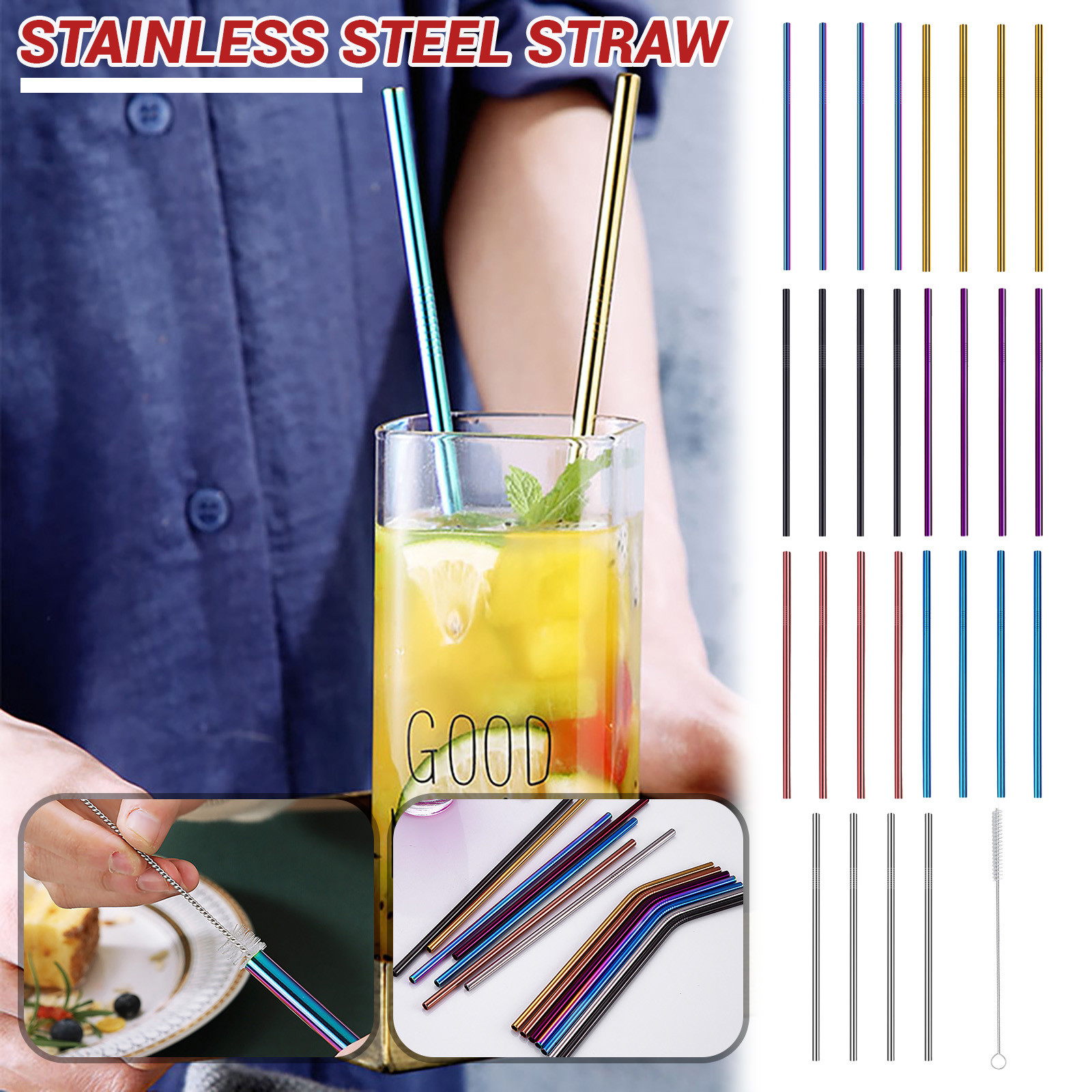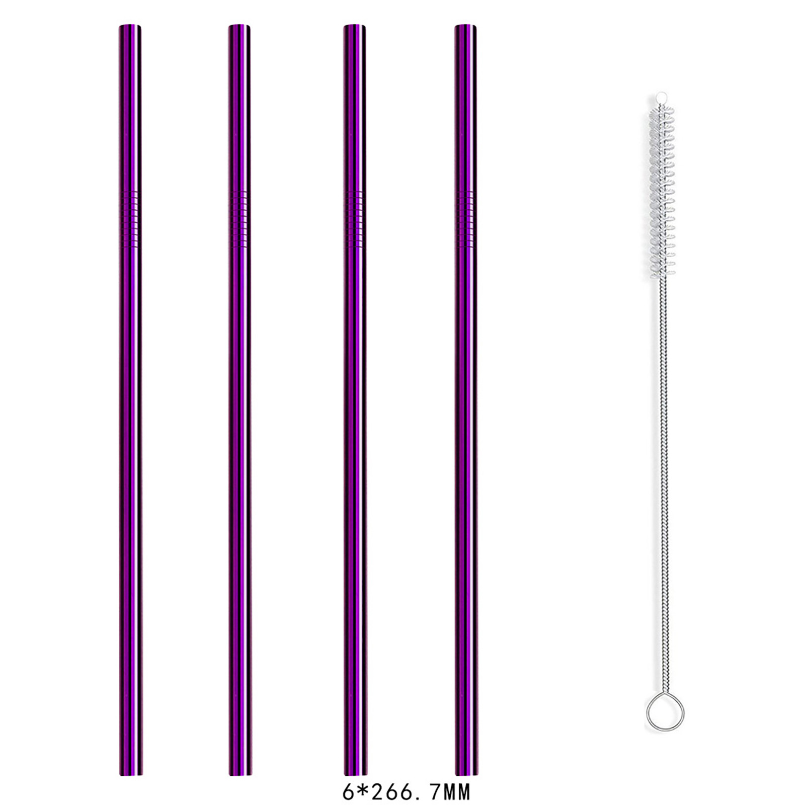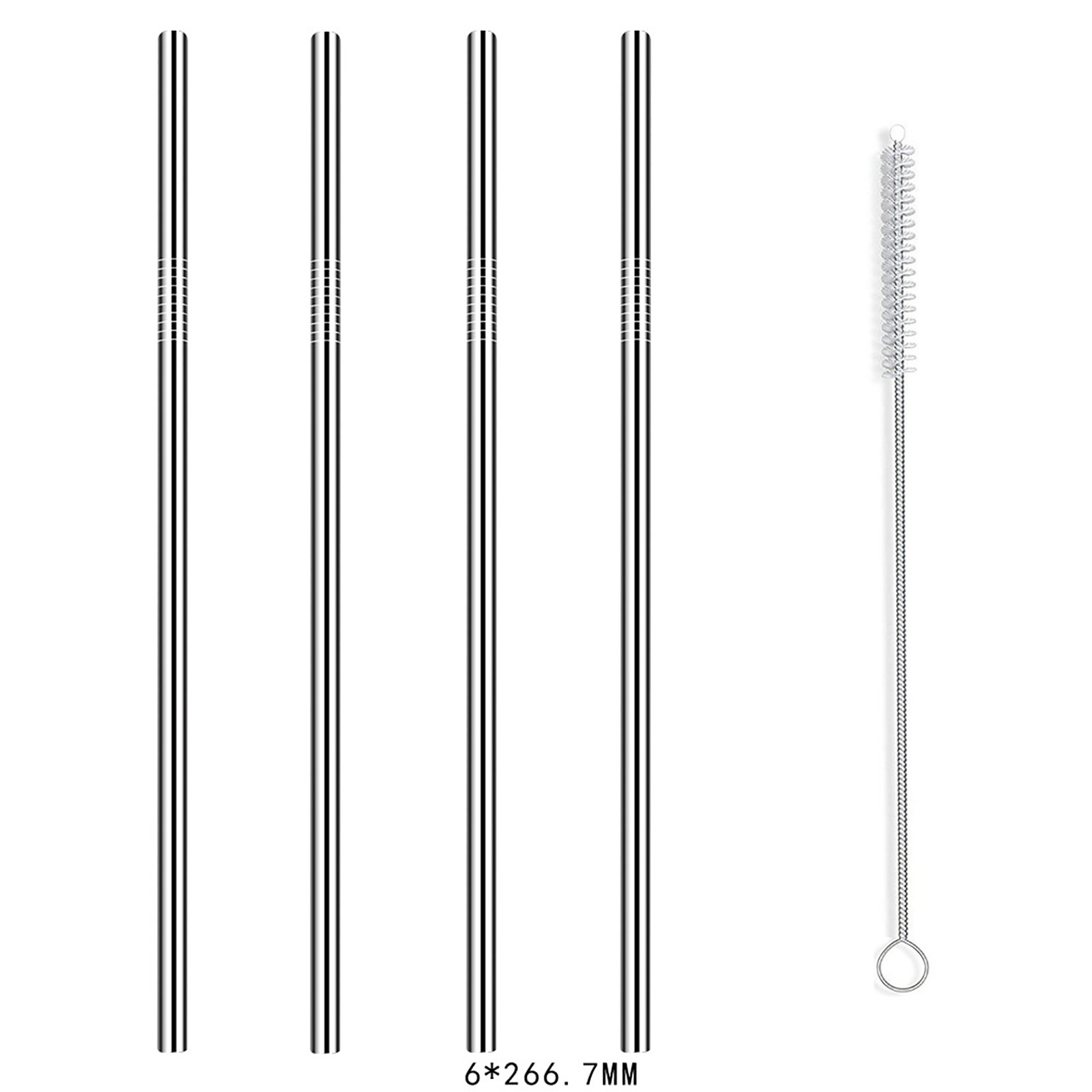 4 прямые многоразовые питьевые соломинки из нержавеющей стали экологически чистые 10.5in, с 1 чистящей щеткой