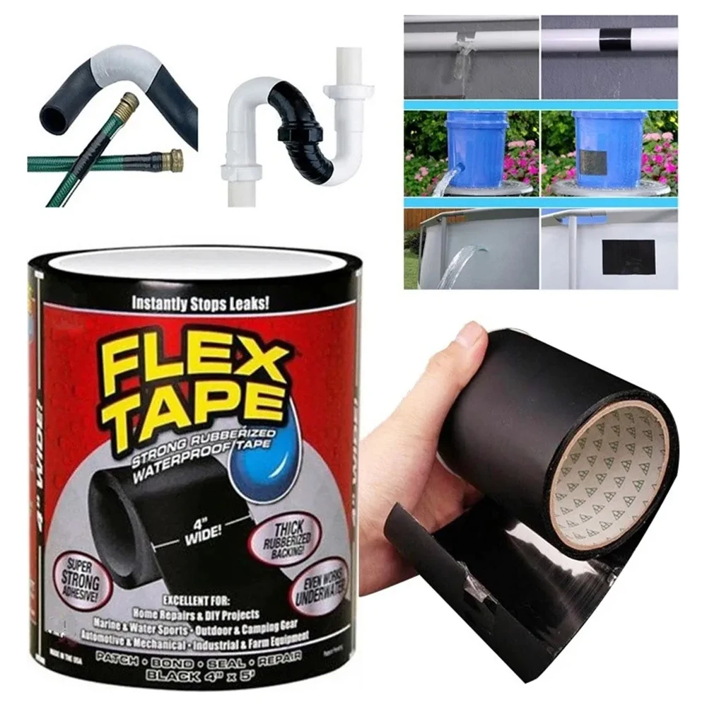 Клейкая лента Flex Tape - это настоящая палочка-выручалочка для решения бытовых чрезвычайных ситуаций. Когда прорвала канализационная труба или образовалась другая утечка, и вода бьет струей во все стороны, действовать нужно быстро и решительно. Понятно, что для глобального устранения проблемы понадобится частичный или полный ремонт, но первое что нужно предпринять, это устранить течь.Клейкая лента способна фиксироваться на всех возможных поверхностях. Клейкая лента Flex Tape не боится высоких и низких температур, вы можете клеить ее на мокрую и сухую поверхность. Купите сверхсильную клейкую ленту Flex Tape, и вы сможете устранить любую бытовую поломку.В каждом доме всегда найдется, что заклеить, особенно в летний сезон. Давно хотели выкинуть надувной матрац или резиновую лодку? Теперь в этом нет необходимости. Ремонтная лента Flex Tape прочно скрепит и залатает любую течь. Удивительно, но ее можно использовать даже для ремонта аквариумов, сливных бачков и емкостей для воды.Теперь вы можете самостоятельно заклеить надувной бассейн и не тратить средства на покупку нового. Причем клеить изоленту Flex Tape вы можете как на наружную, так и на внутреннюю сторону. Не позвольте пробитому мячу помешать активному отдыху на природе. Просто воспользуйтесь сверхсильной клейкой лентой Flex Tape. Можно использовать для ремонта велосипедных камер и всех резиновых поверхностей, никаких особых навыков, токсичных запахов клея, процедура проходит быстро и незаметно. Вы экономите на услугах специалистов и значительно сокращаете время устранения поломки. Держится на всем: на бетоне, дереве, стекле, даже на ткани, на любой грязной или пыльной поверхности. Не боится высоких и низких температур, вы можете наклеить ленту на мокрую или сухую поверхность.