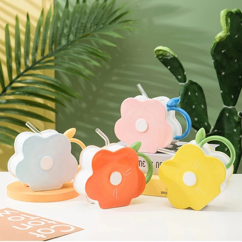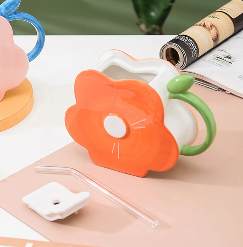 Новая креативная 3D Керамическая кофейная соломенная кружка с ручной росписью в форме цветка персонализированный праздничный подарок для друзей, семьи и детей