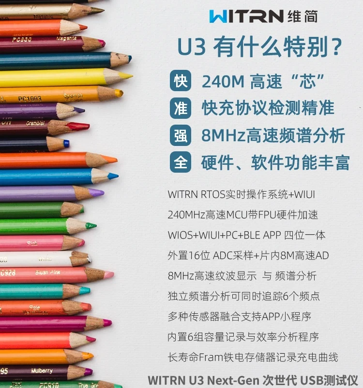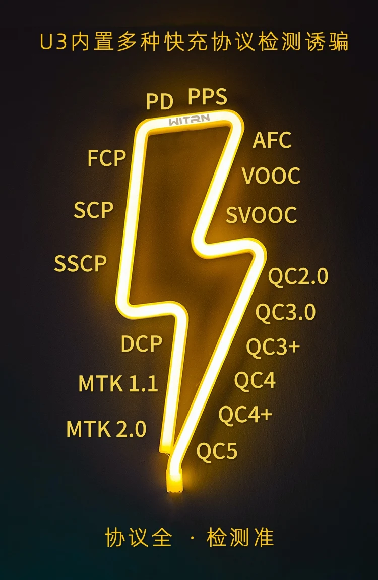 WITRN U3 current and voltmeter USB tester QC5PD detects PPS fast charge protocol ripple spectrum