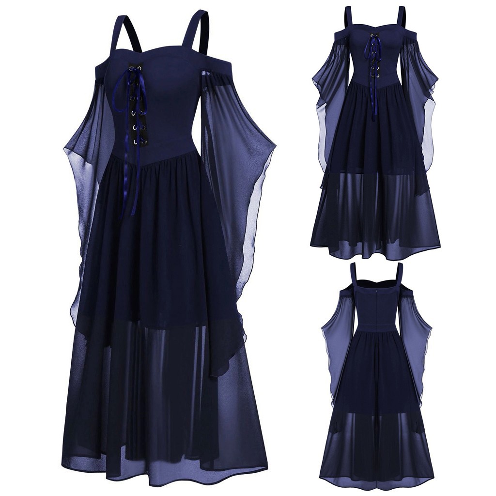Женское платье для хеллоуина размера плюс с открытыми плечами и рукавом-бабочкой на шнуровке