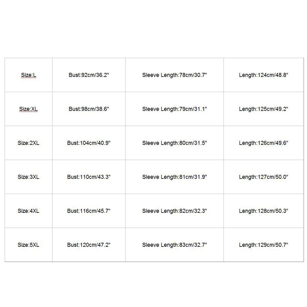 Размеры Американский размер Размер Великобритании Европейский размер Бюст Рукав Длина L 8 12 38 92 см/36,22'' 78 см/30,71'' 124 см/48,82'' XL 10 14 40 98 см/38,58'' 79 см/31,10'' 125 см/49,21'' XXL 12 16 42 104 см/40,94'' 80 см/31,50'' 126 см/49,61'' XХХL 14 18 44 110 см/43,31'' 81 см/31,89'' 127 см/50,00'' XXXXL 16 20 46 116 см/45,67'' 82 см/32,28'' 128 см/50,39''
