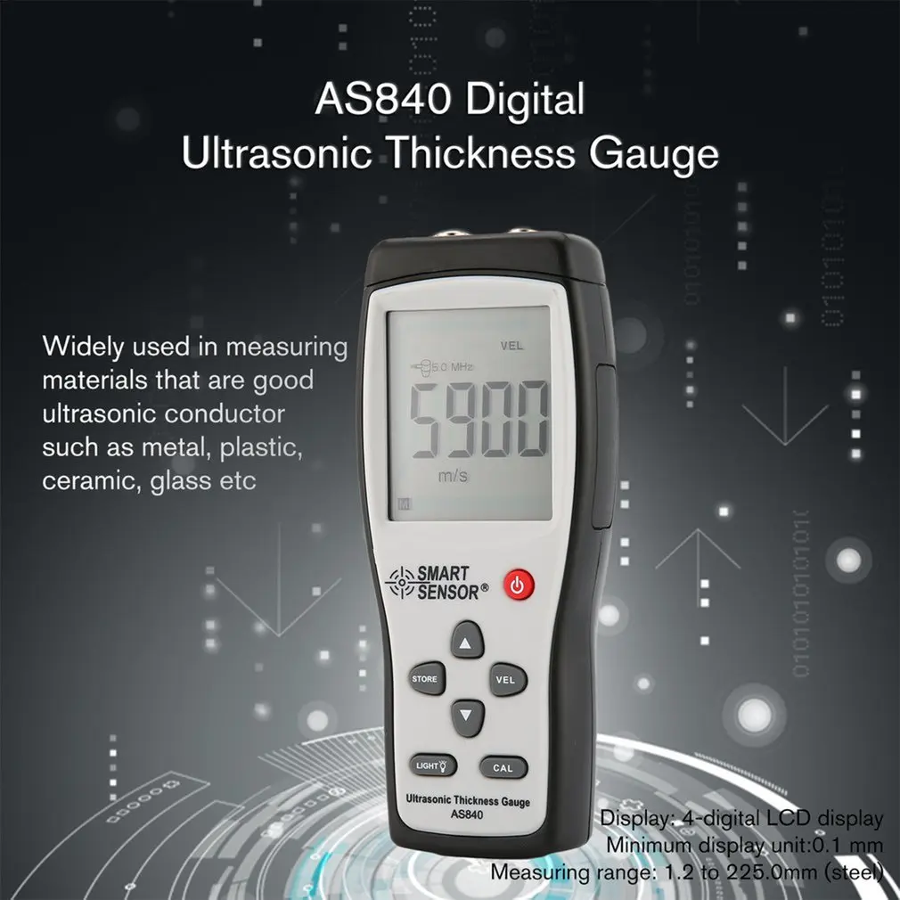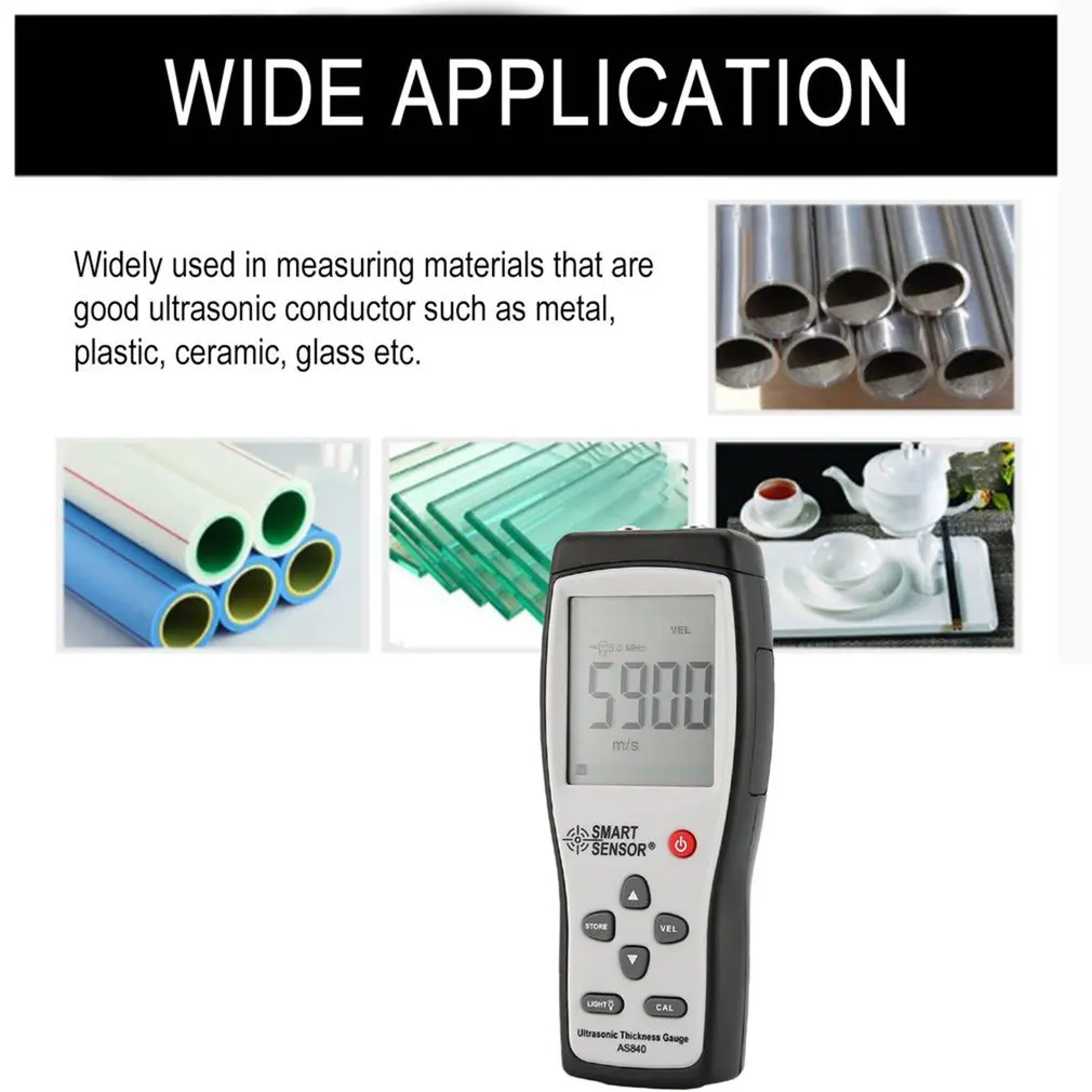 Особенности: 1. Ультразвуковой толщиномер, автоматическая калибровка для обеспечения точности. 2. Автоматическая линейная компенсация, режим автоматического отключения питания. 3. Измерение скорости звука, 12 звуковых скоростей для различных материалов. 4. Компактный размер, легкий вес, легко носить с собой и работать. 5. Большой ЖК-дисплей с переключаемой подсветкой. Описание: 1. Принимает принцип ультразвукового измерения и контролируется микропроцессором. 2. Высокоточный портативный, с компактным размером и легким весом легко носить с собой и работать. 3. Широко используется в измерительных материалах, которые являются хорошими ультразвуковыми проводниками, такими как металл, пластик, керамика, стекло и т. д. Характеристики: Модель: AS840 Дисплей: 4-цифровой ЖК-дисплей Дисплей Минимальный дисплей: 0,1 мм Диапазон измерения: от 1,2 до 225,0 мм (сталь) Рабочая частота: 5 МГц Точность: (1% H + 0,1) мм, H обозначает измеренную толщину. Минимальный предел для измерения трубки: 20*3 мм (сталь) Диапазон скорости звука: от 1000 до 9999 м/с Измерение скорости звука с заданной толщиной: Диапазон измерения: от 1000 до 9999 м/с. При заданной толщине> 20 мм Точность +/-5%; При заданной толщине <20 мм Точность +/-1 мм/ч * 100%. Рабочая температура: 0 °C ~ 40 °C Рабочий ток: Нормальный рабочий ток: 50 мА С подсветкой включение тока: 120 мА Постоянный ток: 20uA Мощность питания: 1,5 V AAA * 3 (не прилагаются) Автоматическая нулевая Калибровка: Y Автоматическая линейная компенсация: Y Индикатор соединения: Y Индикация батареи/автоматическое выключение питания: Y Размер изделия: 160x60x30 мм Посылка включает в себя: 1 * цифровой толщиномер AS840 1 * Блок Для примера 1 * Соединительный агент 1 * преобразователь 1 * полипропиленовый упаковочный ящик 1 * Руководство по эксплуатации (на английском языке)