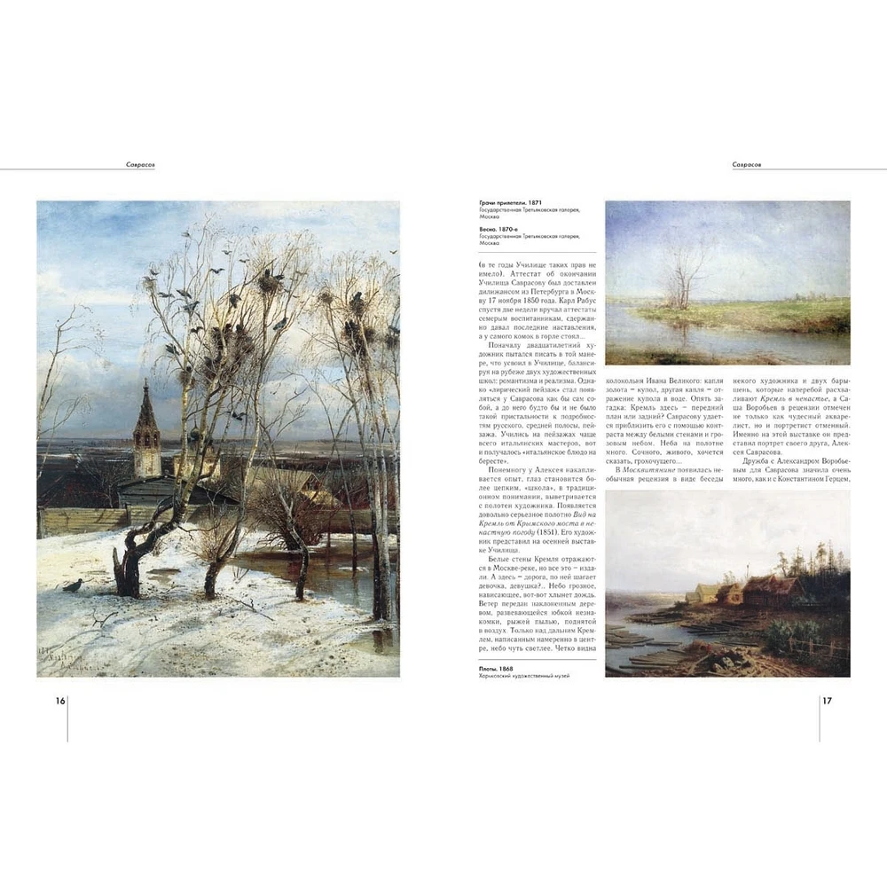 Проникновенные русские пейзажи Алексея Саврасова, его известные картины "Проселок", "Грачи прилетели" и другие всегда будут радовать ценителей творчества художника. Альбом содержит множество цветных репродукций.