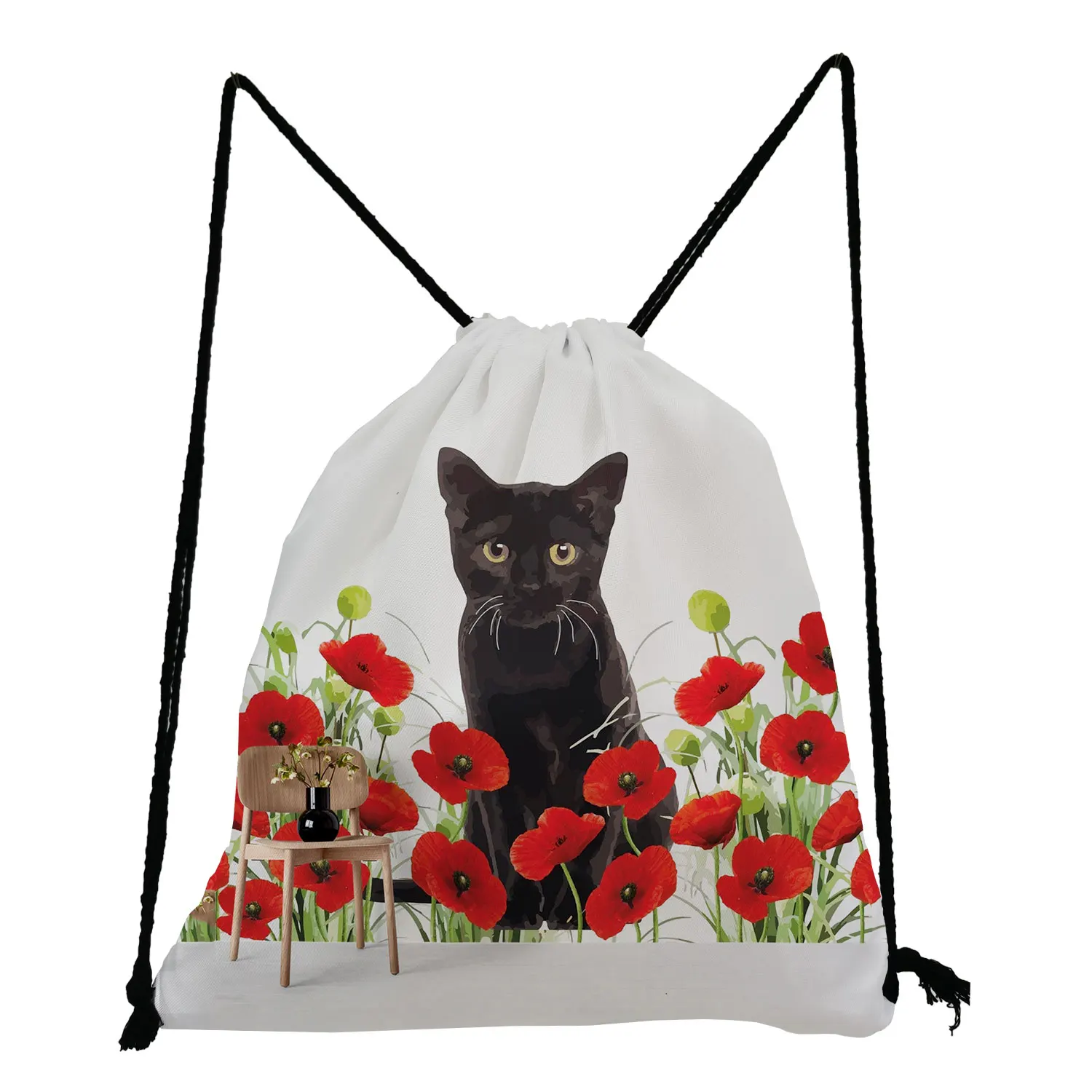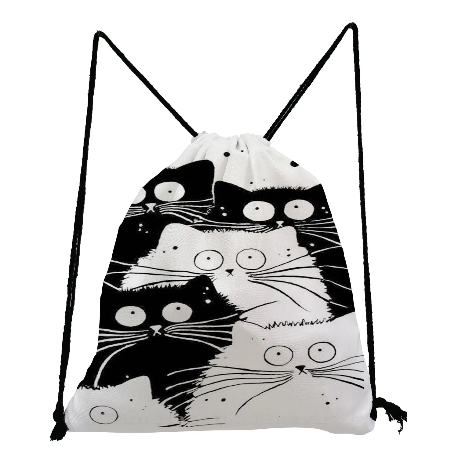 Высококачественные сумки на шнурке с принтом черного кота для мальчиков и девочек-подростков, повседневная сумка для хранения, рюкзак, хит продаж, сумка для обуви в школу