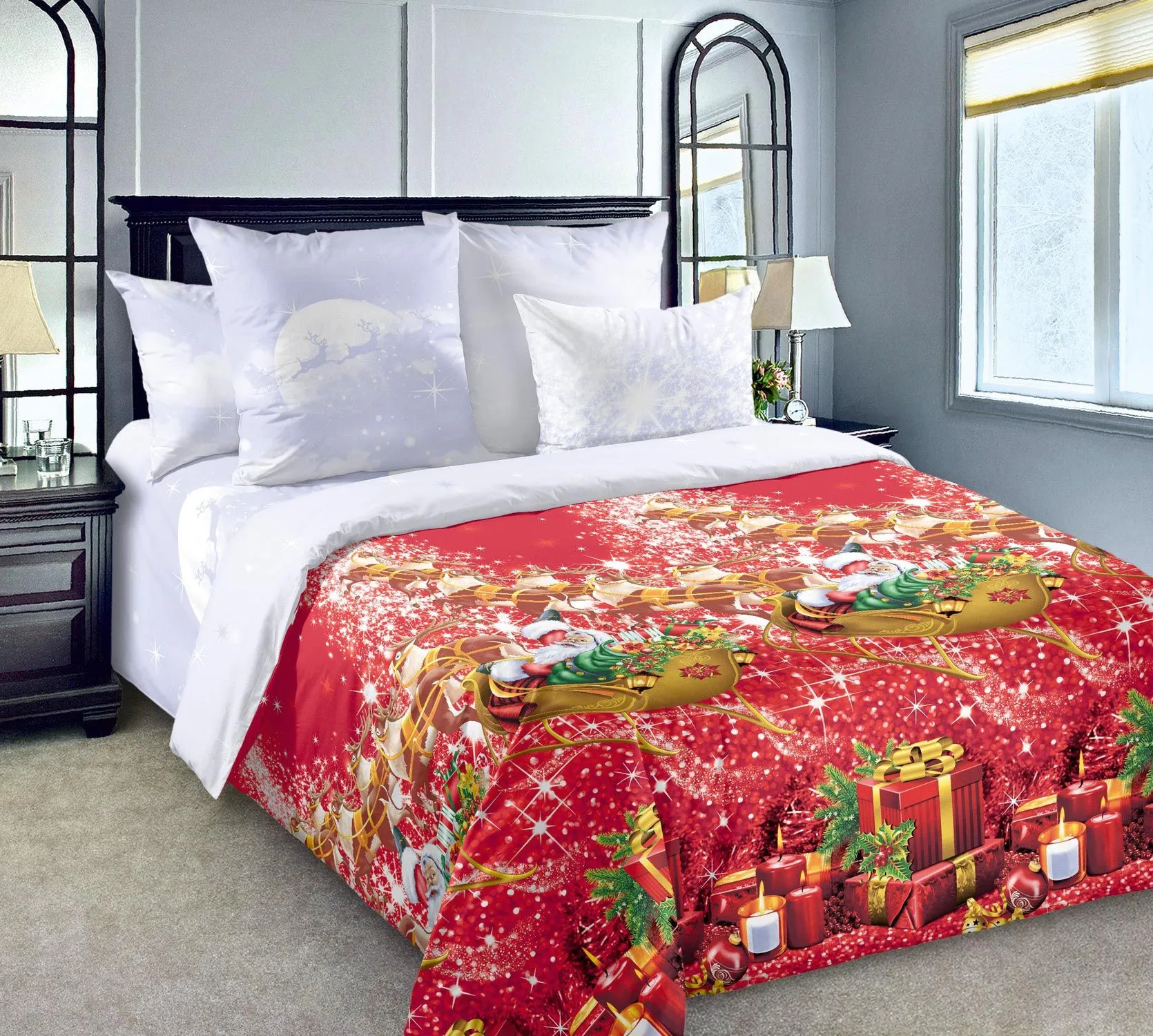 Чтобы в полной мере проникнуться атмосферой праздника, приобретайте новогодние комплекты постельного белья. Модели теплых оттенков с рисунками в стилистике Нового года ассоциируются с домашним теплом, уютом и радостью. Постель, украшенная тематическими узорами, сама станет украшением спальни.